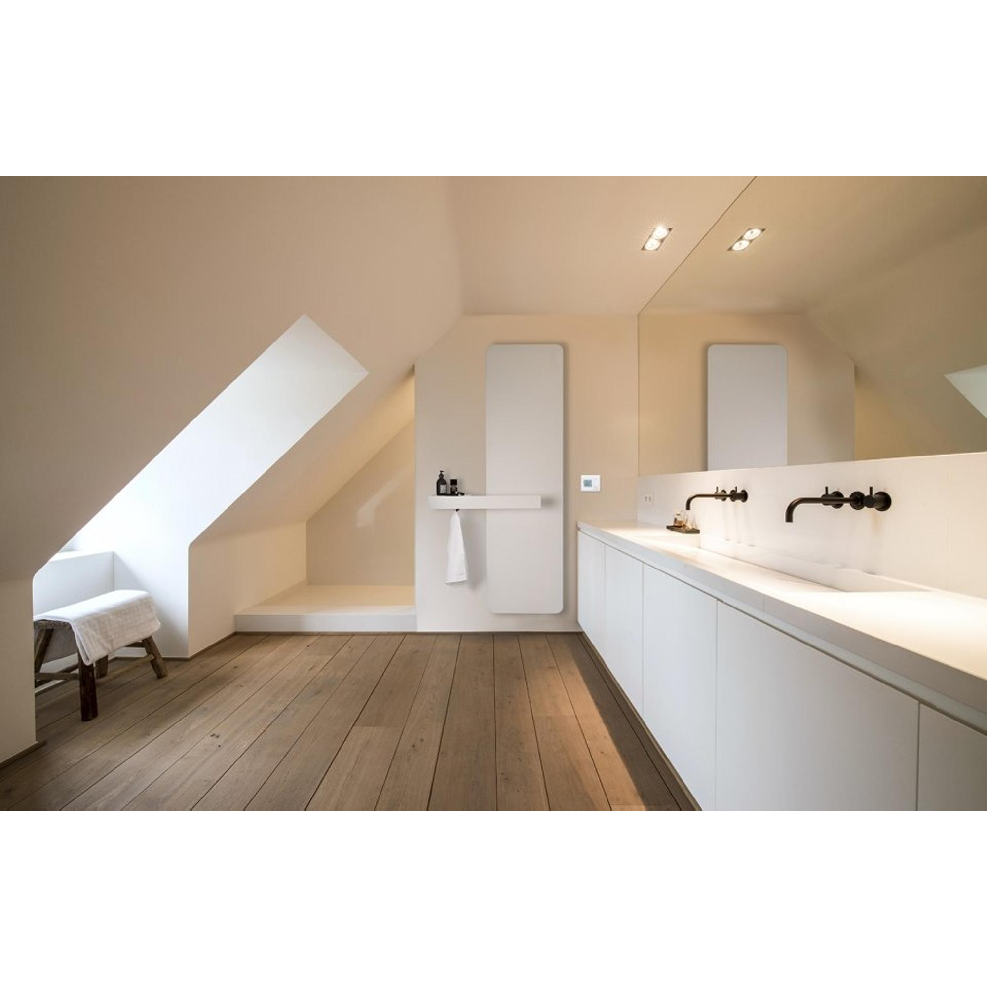 De Vasco ONI O-P-EL elektrische designradiator combineert modern design met duurzame materialen en functionaliteit. Het aluminium materiaal zorgt voor een lichtgewicht en robuuste constructie die lang meegaat en bestand is tegen dagelijks gebruik. De witte structuur geeft een frisse en eigentijdse uitstraling aan de radiator, waardoor het een blikvanger wordt in elke ruimte.