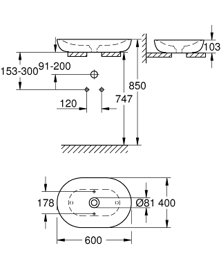 GROHE Essence ceramic opzetwastafel 60cm Pureguard wit