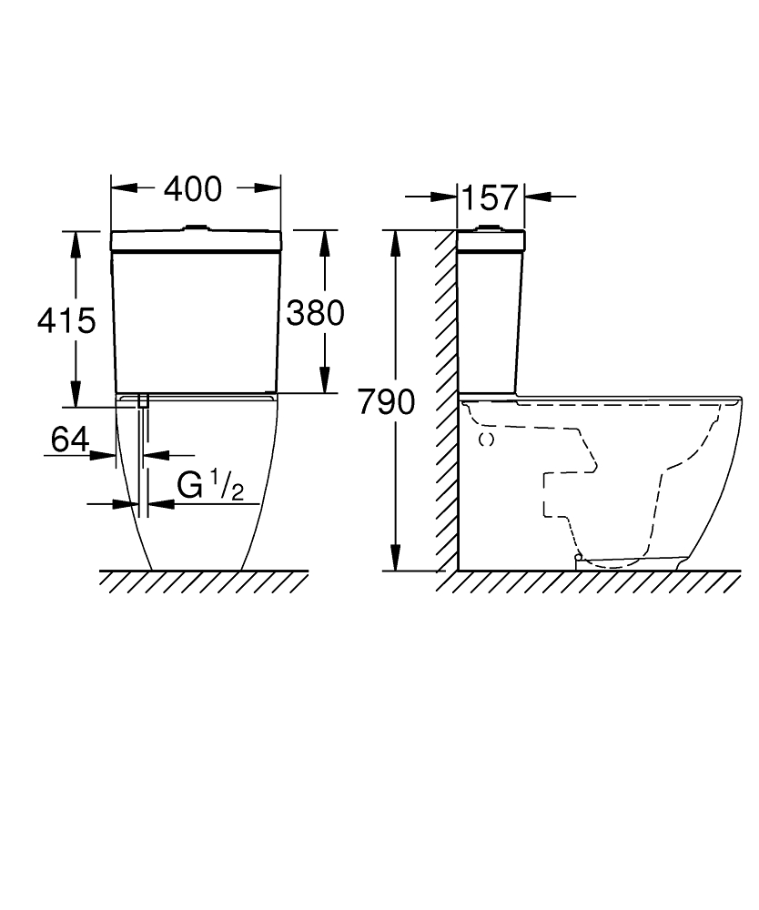 GROHE Essence duoblokreservoir + binnenwerk m. onderaansluiting 4.5/3L dualflush wit