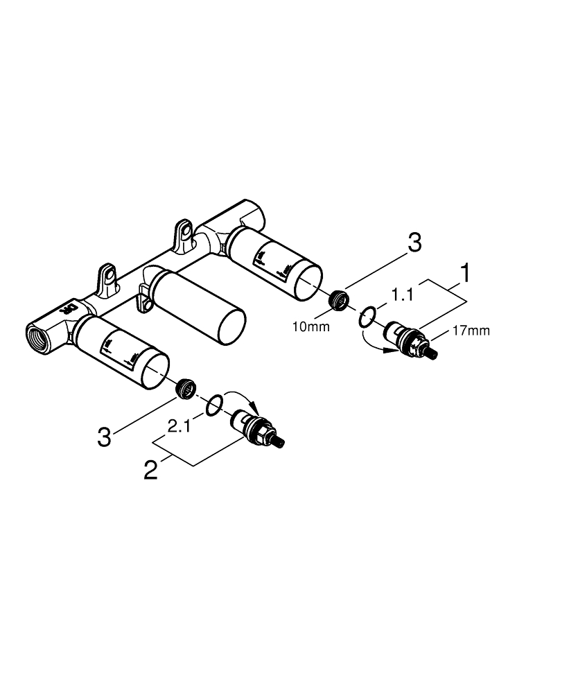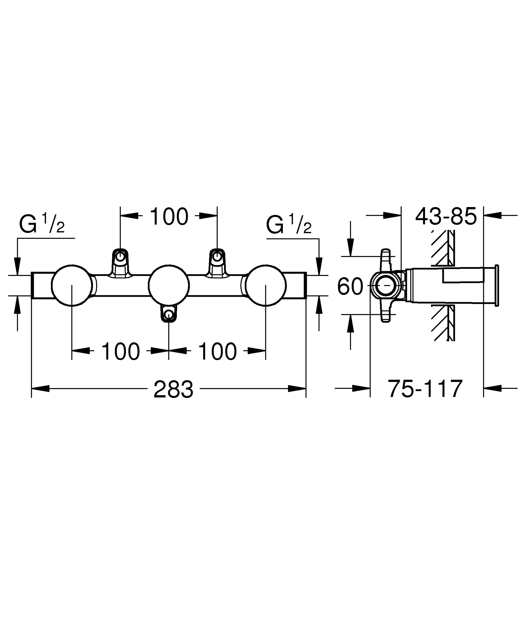 GROHE inbouwdeel v. 3-gats afbouwdeel wandkraan inbouwdiepte 43-85mm