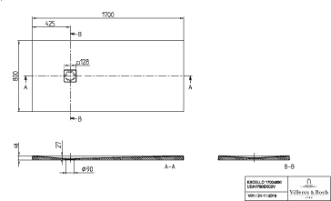 Villeroy & Boch Excello Douchevloer 170x80cm Polyurethaan Acryl Nature White