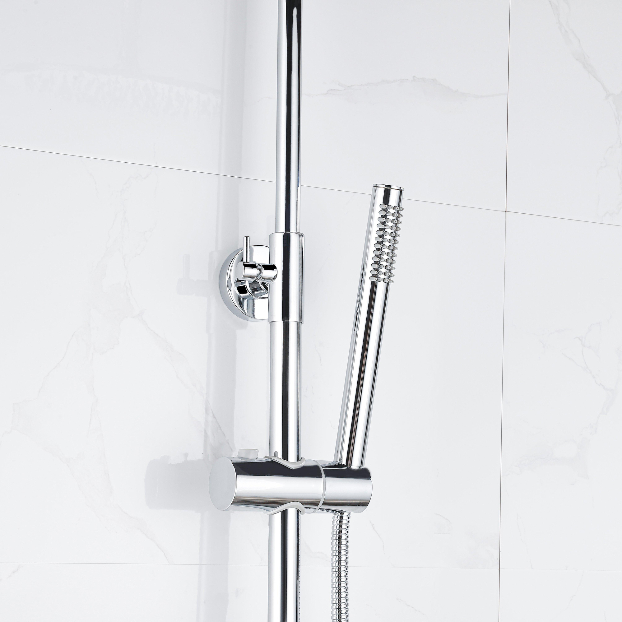 Met de thermostatische regendouche van de Fortifura Calvi Thermostatische Regendoucheset geniet je van ultiem comfort. Stel eenvoudig de gewenste watertemperatuur in en laat je verwennen door de ontspannende regenstraal. De regendouche zorgt voor een luxe spa-ervaring in je eigen badkamer, waardoor elke douchebeurt een verwenmoment wordt. De combinatie van de ronde hoofddouche en de staafhanddouche biedt veelzijdigheid en gemak voor een gepersonaliseerde douche-ervaring.