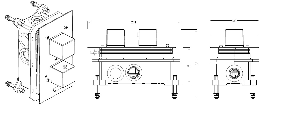 Met deze complete thermostaat heeft u een inbouw en een opbouwdeel. De Adema heeft aan de buitenkant een vierkante plaat met twee vierkante knoppen. Het inbouwsysteem heeft als voordeel dat de techniek is verwerkt in de muur, waardoor u alleen de knoppen ziet. U bedient de kraan middels de twee knoppen. Met de ene regelt u de temperatuur van het water, terwijl u met de andere knop het watervolume bedient.