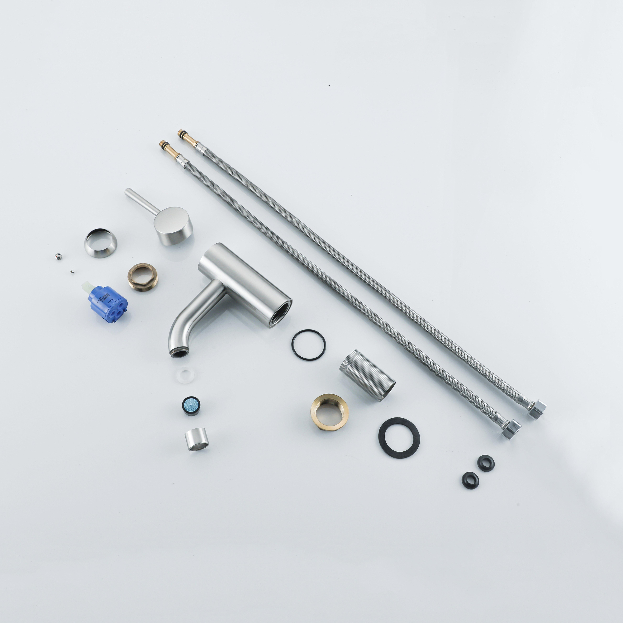 De Fortifura Calvi Wastafelkraan straalt stijl en elegantie uit dankzij zijn moderne ontwerp en geborsteld roestvrijstalen afwerking. De slanke vormgeving en de hoogwaardige materialen zorgen ervoor dat deze kraan een eyecatcher is in elke badkamer. De combinatie van functionaliteit en esthetiek maakt deze kraan perfect voor wie op zoek is naar een verfijnde en tijdloze uitstraling.