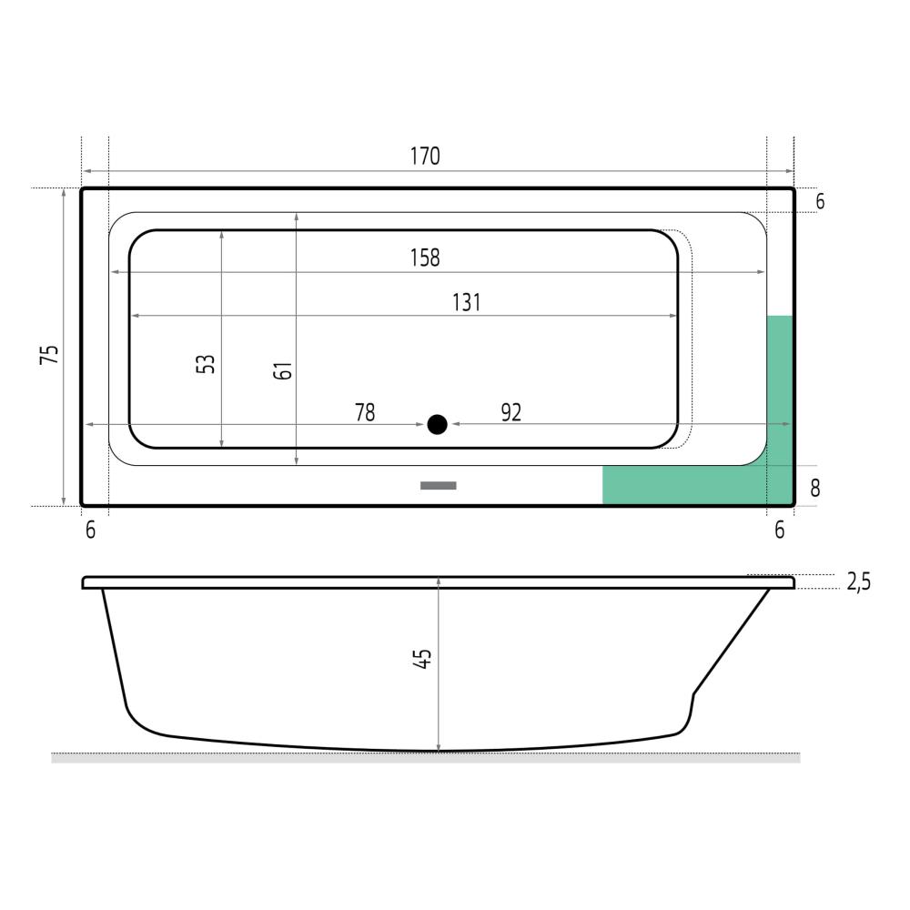 Het Xenz Kristal inbouwbad is ontworpen met oog voor stijl en verfijning. Het strakke en tijdloze ontwerp past perfect in zowel moderne als klassieke badkamers. De glanzende afwerking van Acryl Cement geeft het bad een luxueuze uitstraling die de hele ruimte verheft. Met de afmetingen van 170x75cm biedt dit bad voldoende ruimte om comfortabel te genieten van een rustgevend bad.