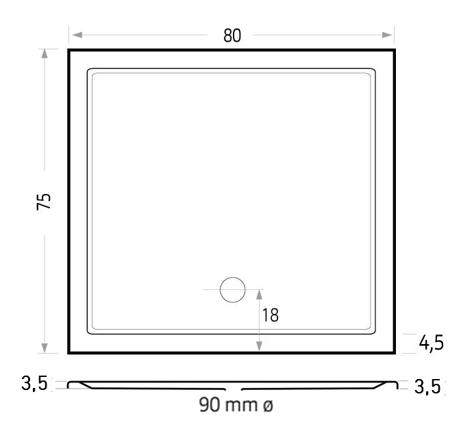 Xenz Mariana douchebak 80x75x4cm rechthoek Acryl Wit