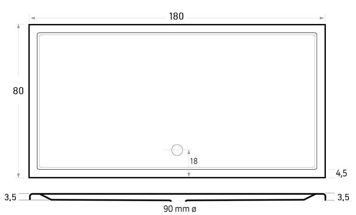 Xenz Mariana douchebak 180x80x4cm rechthoek Acryl Wit