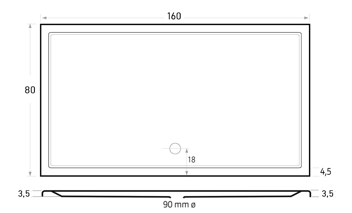 Xenz Mariana douchebak 160x80x4cm rechthoek Acryl Antraciet