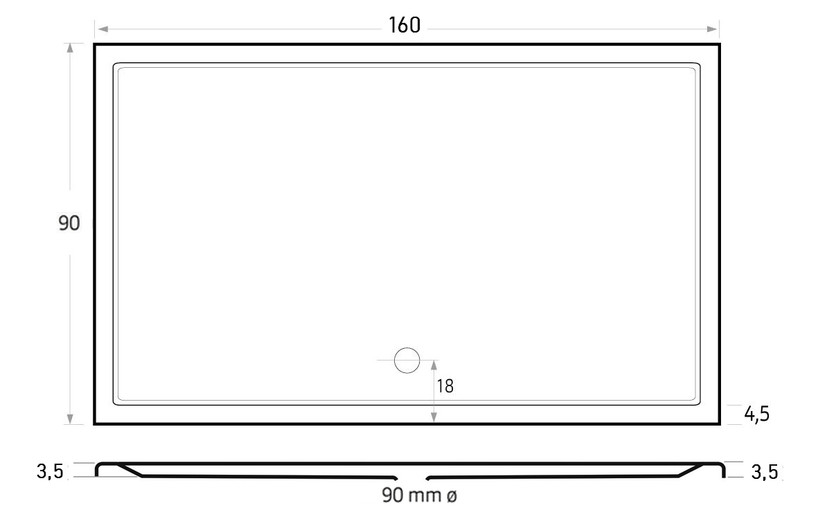 Xenz Mariana douchebak 160x90x4cm rechthoek Acryl Cement