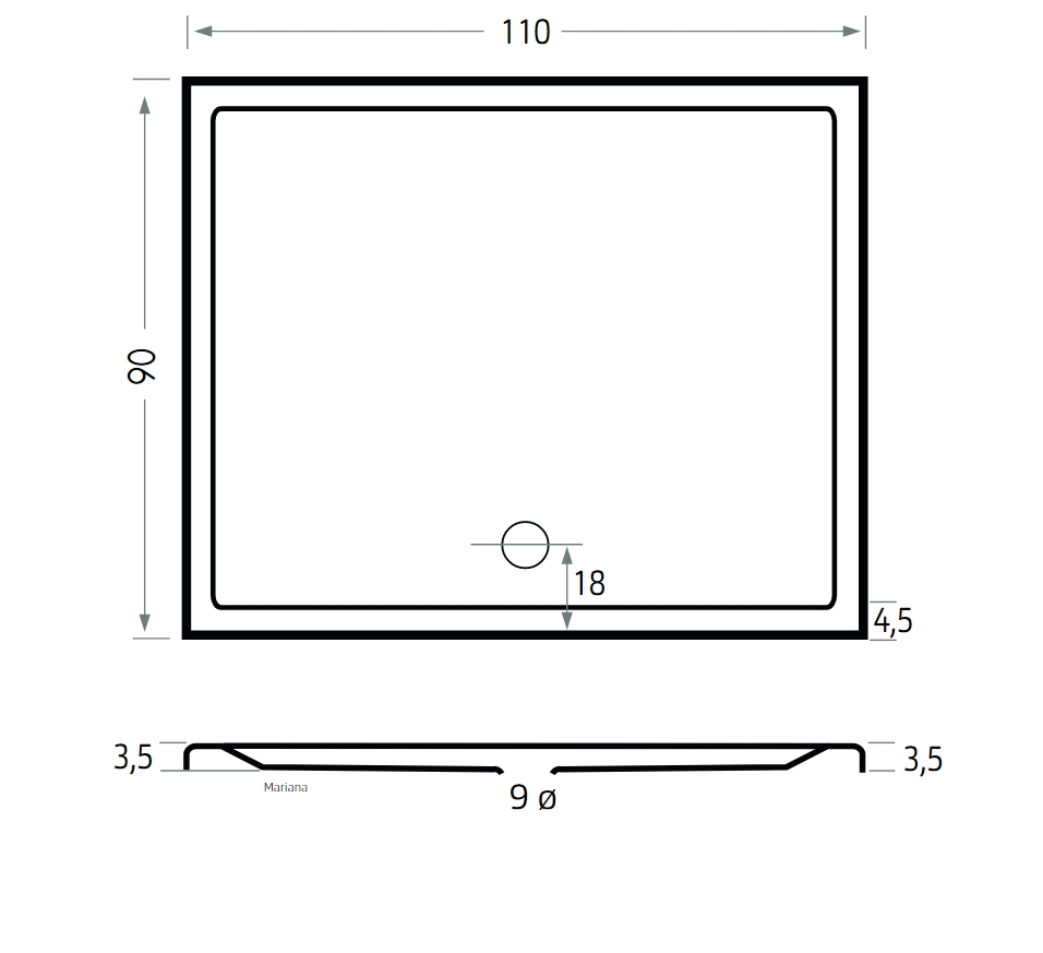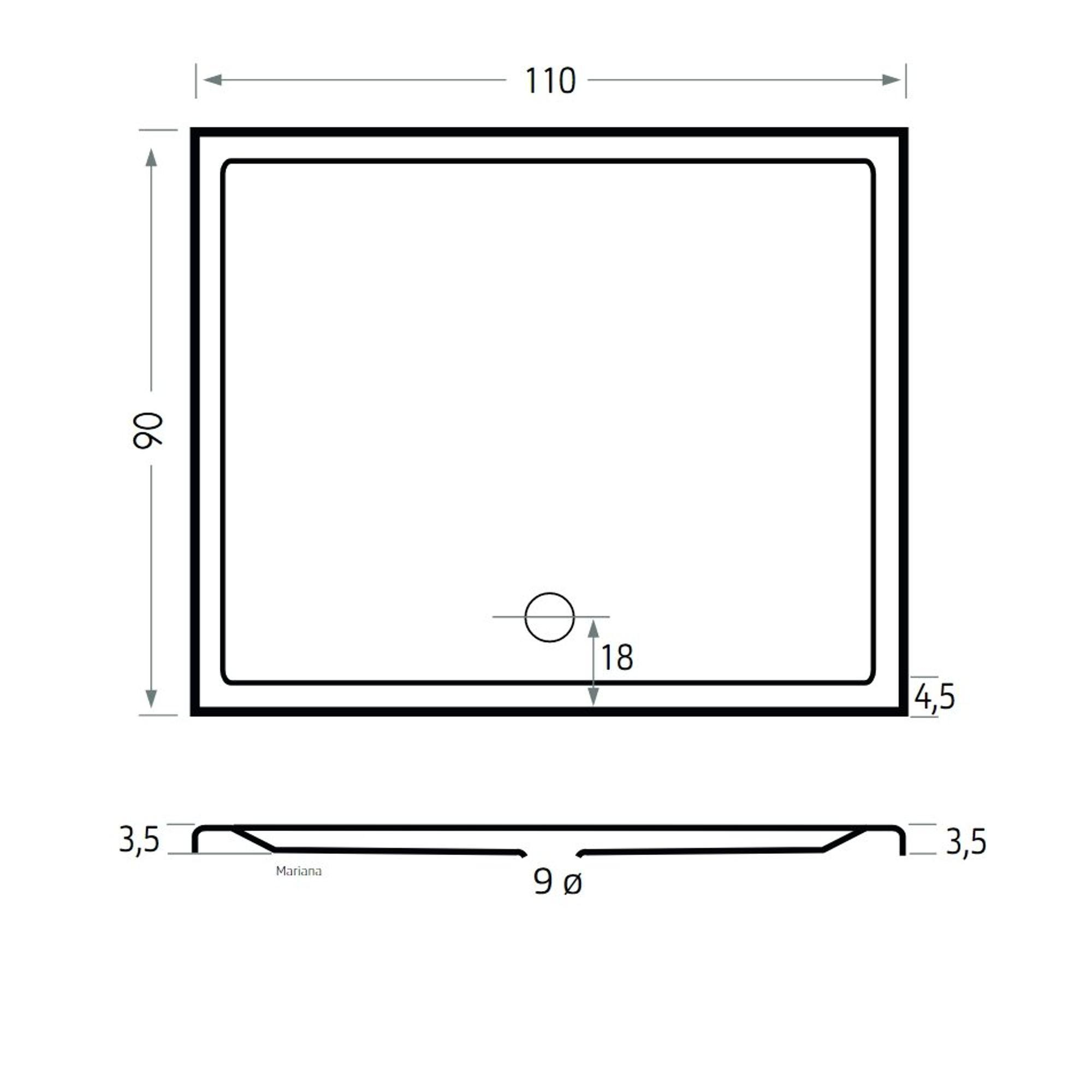 Xenz Mariana douchebak 110x90x4cm rechthoek Acryl Wit