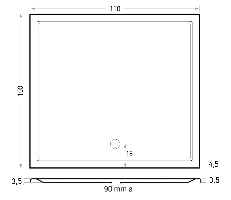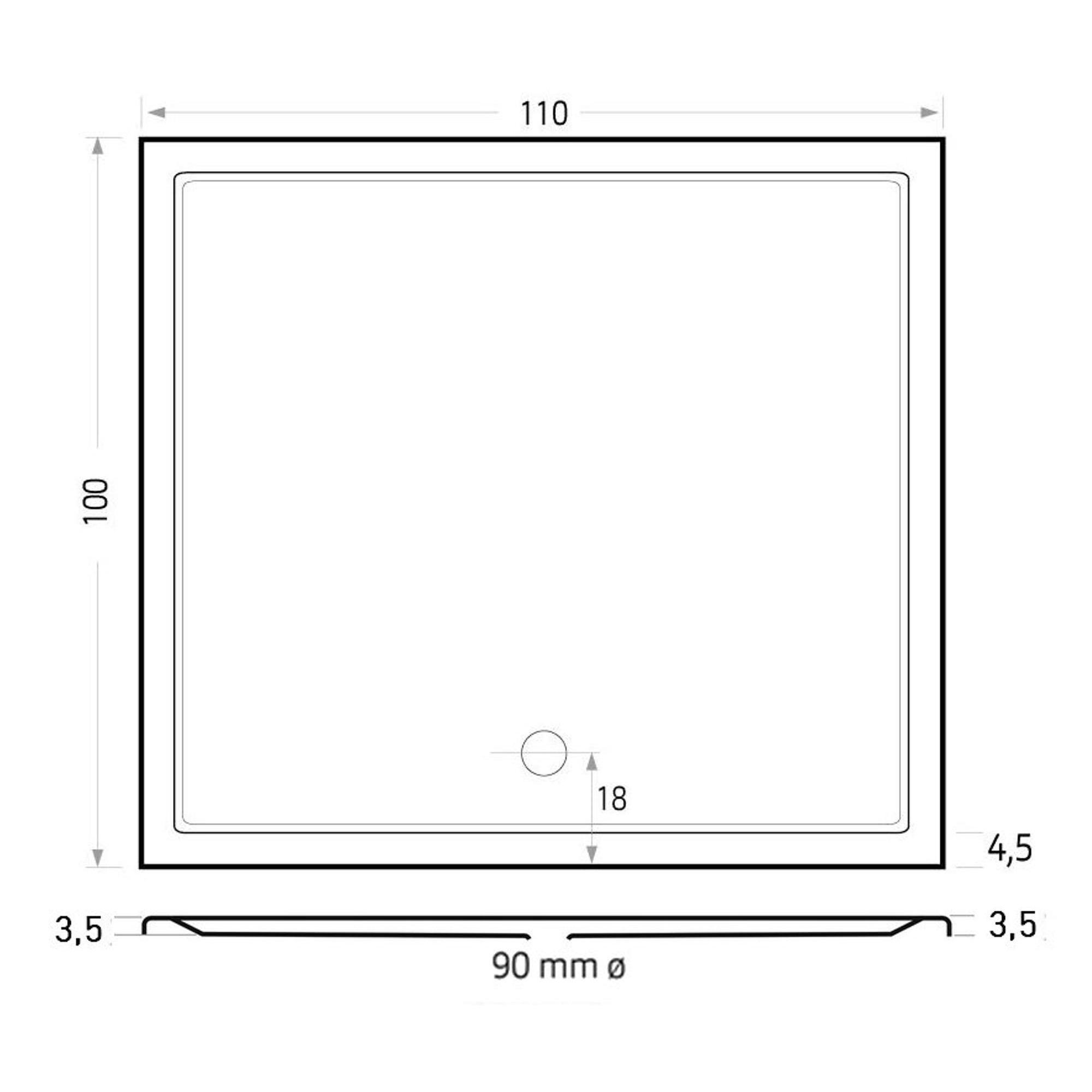 Xenz Mariana douchebak 110x100x4cm rechthoek Acryl Ebony
