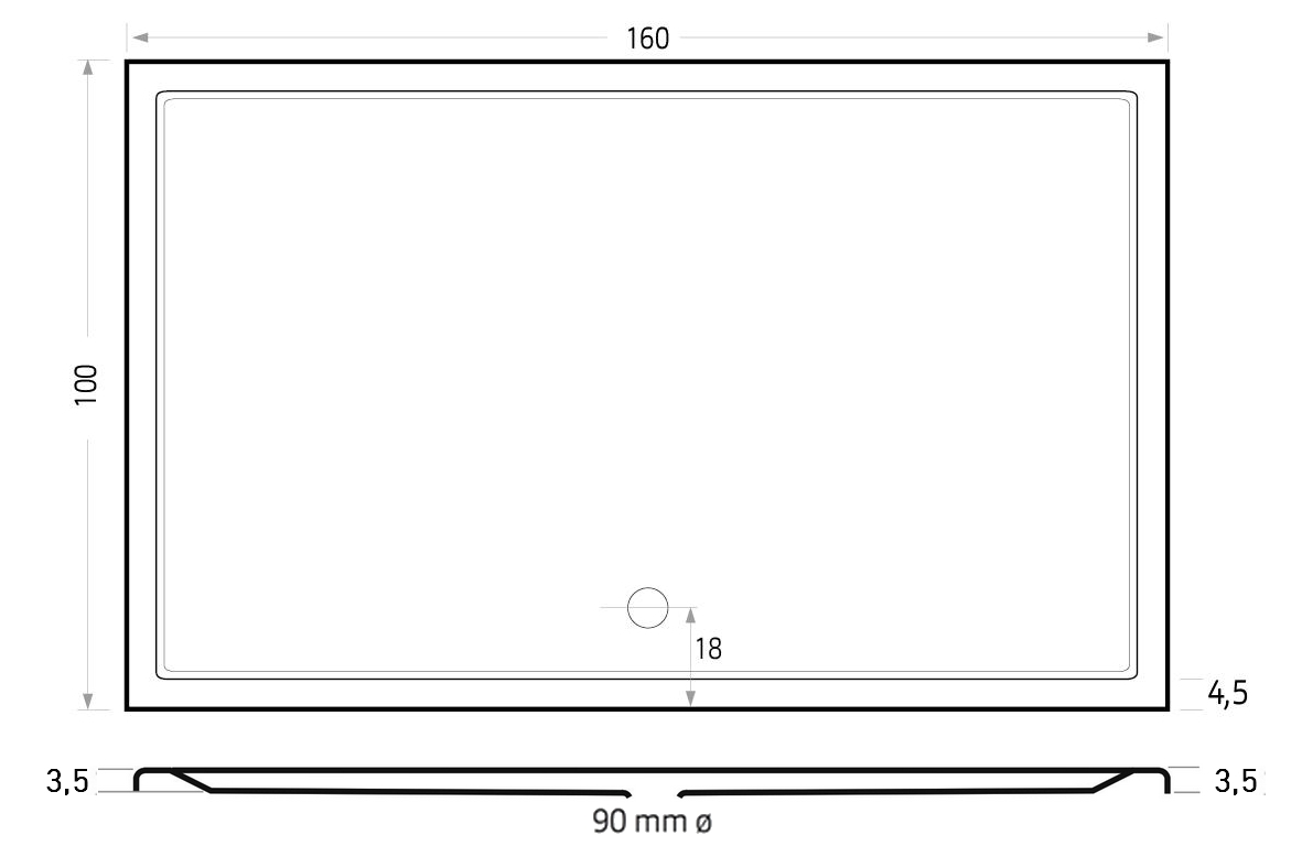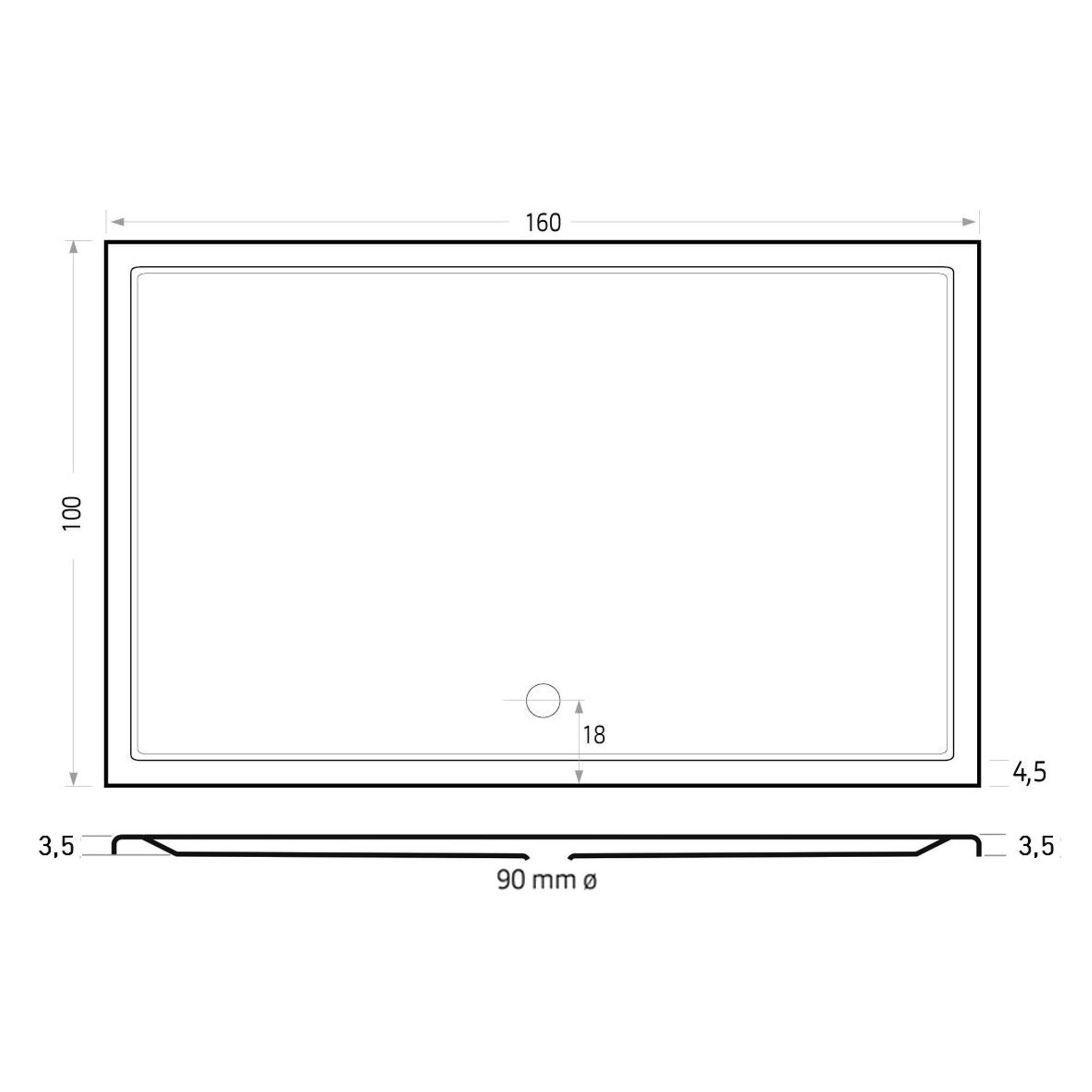 Xenz Mariana douchebak 160x100x4cm rechthoek Acryl Wit