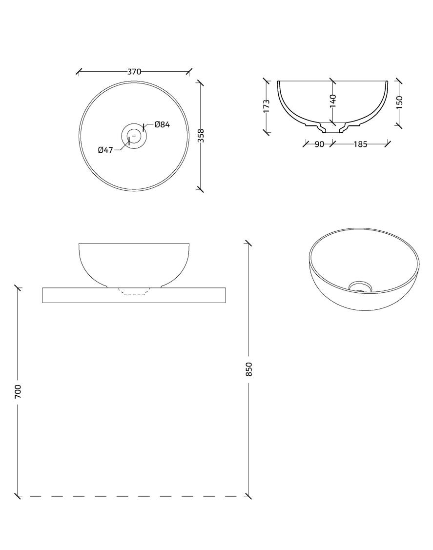 Xenz George Waskom 37x37cm Rond keramiek Glans Wit