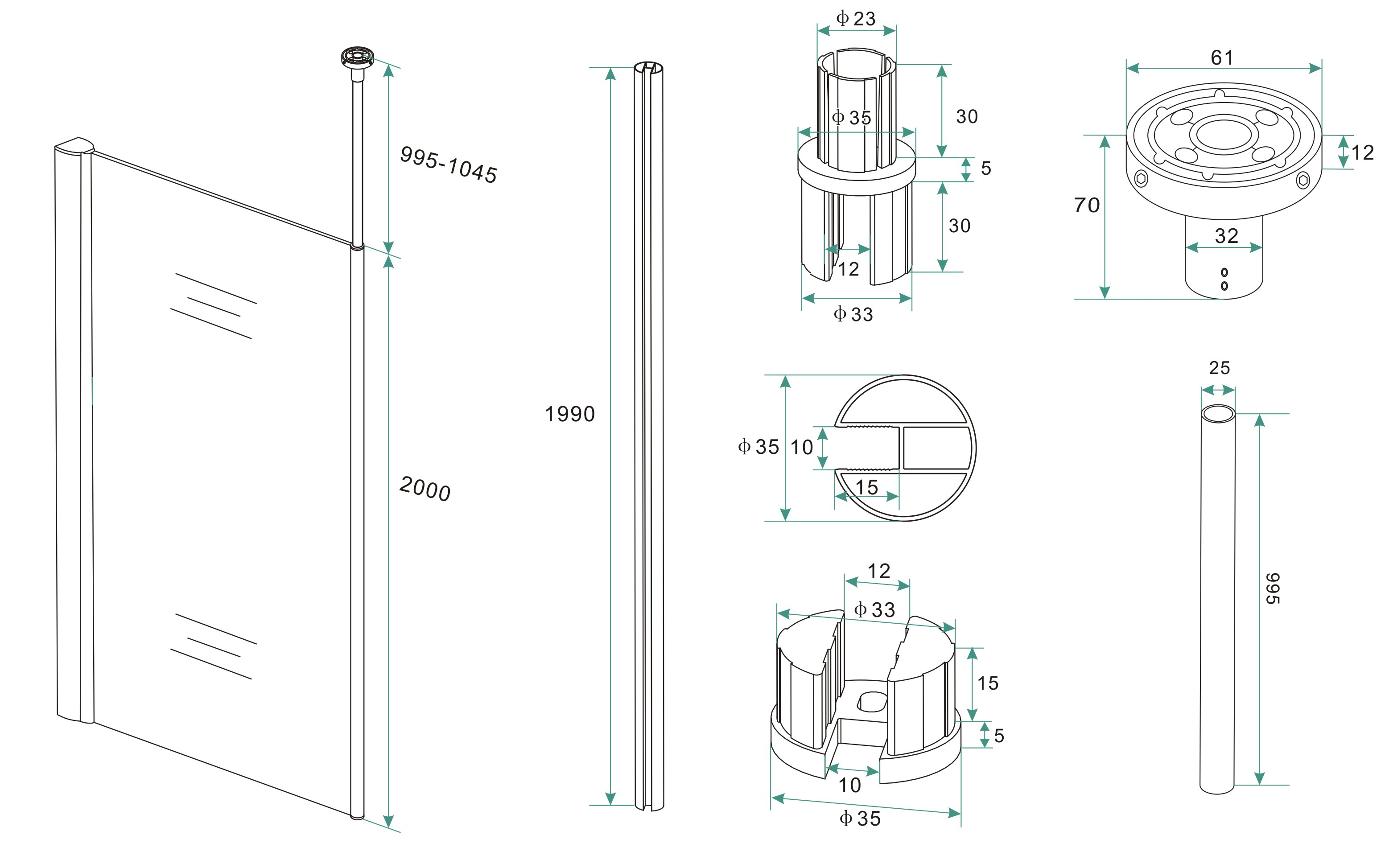 Lengte verticale stabilisatiestang: 100cm inkortbaar