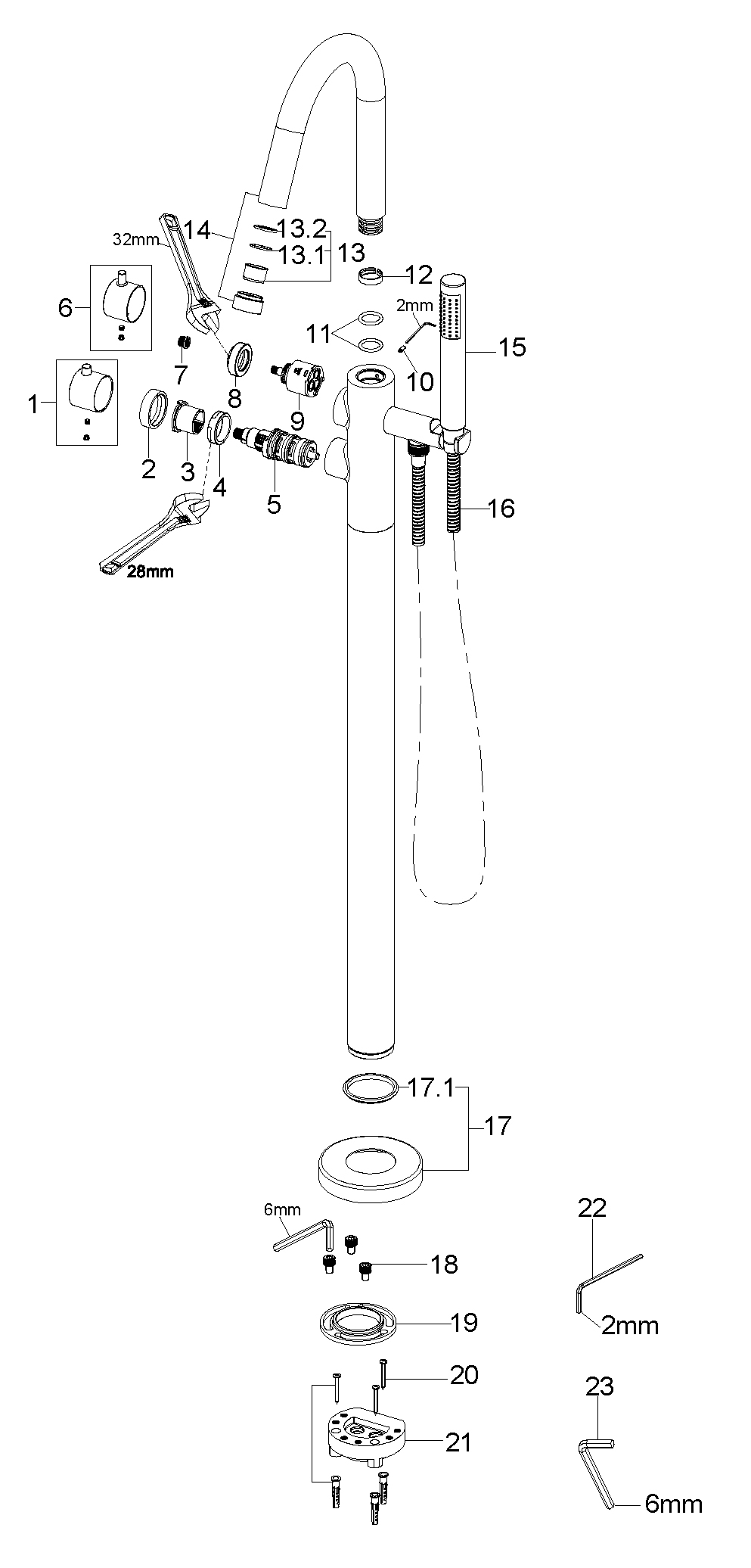 Wiesbaden Caral thermostatische badmengkraan vrijstaand geborsteld staal