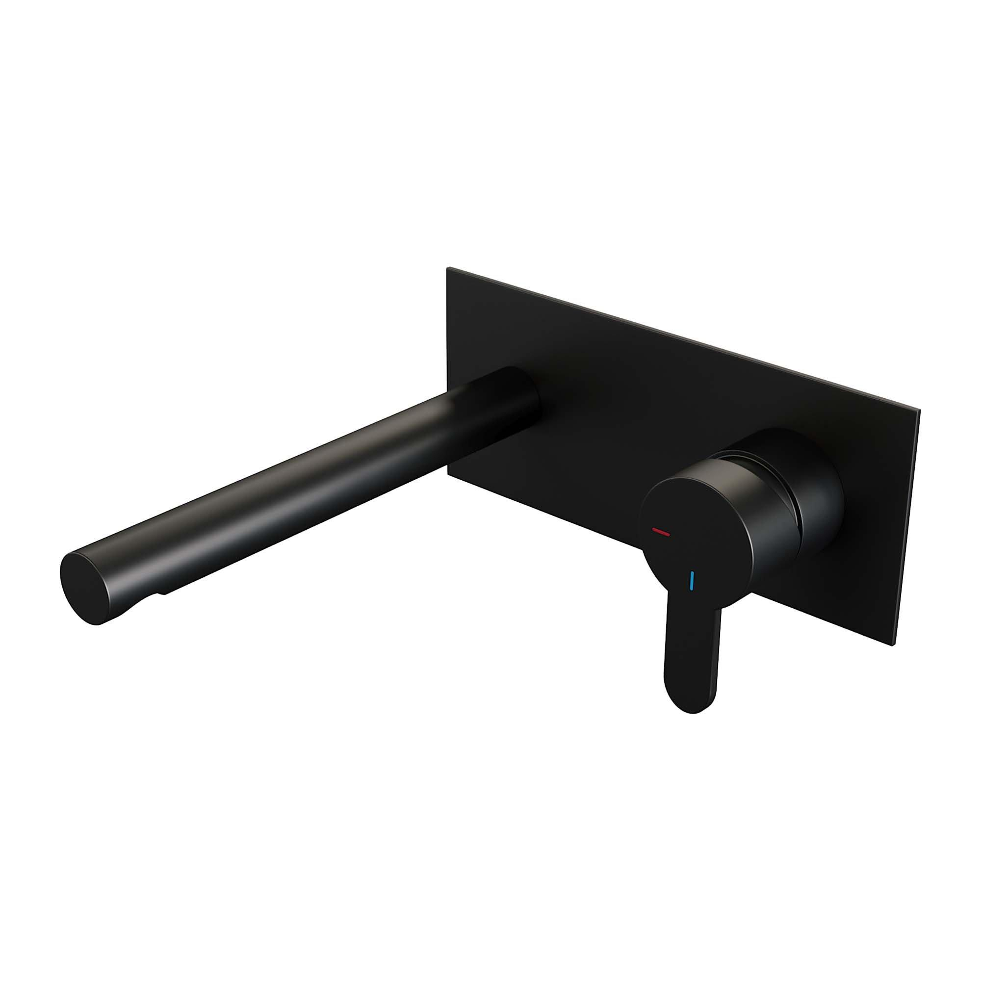 Brauer Black Edition Wastafelmengkraan inbouw - rechte uitloop links - hendel plat smal - afdekplaat - model D 1 - mat zwart