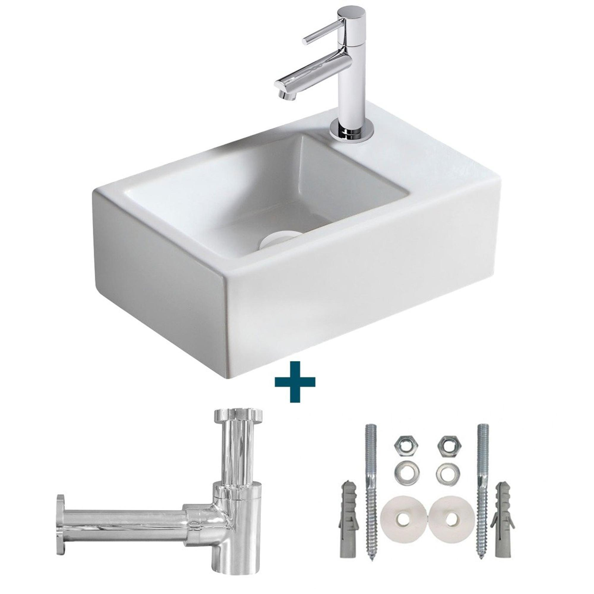 Nemo Spring Sula fonteinset 37x23.5cm zonder overloop inclusief 14cm koudwaterkraan en sifon porselein wit