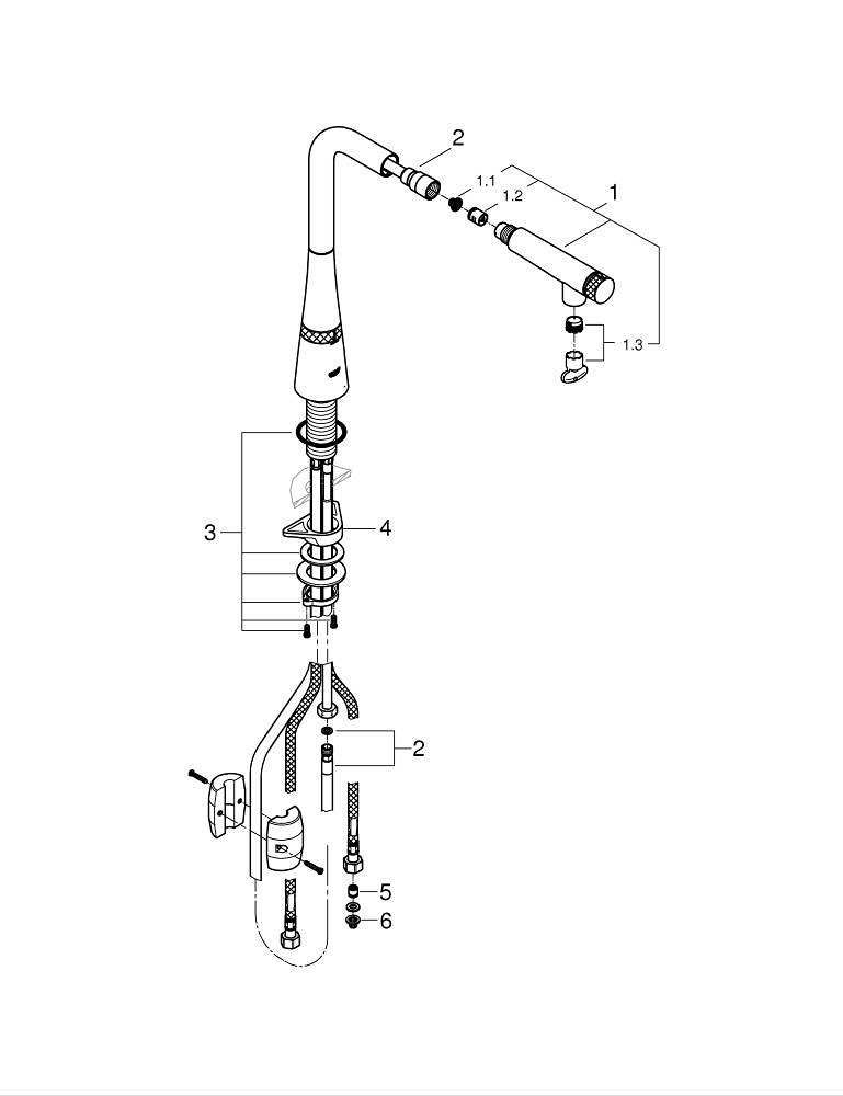 GROHE Zero interne kanalen, waardoor het water niet met de legering in contact komt
