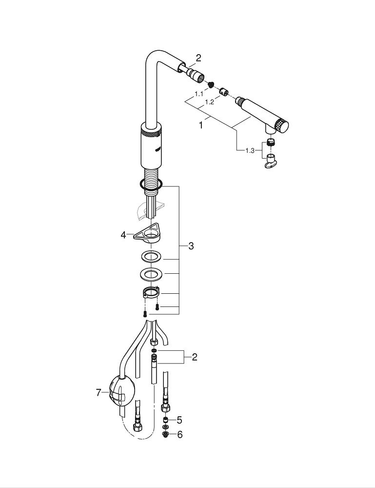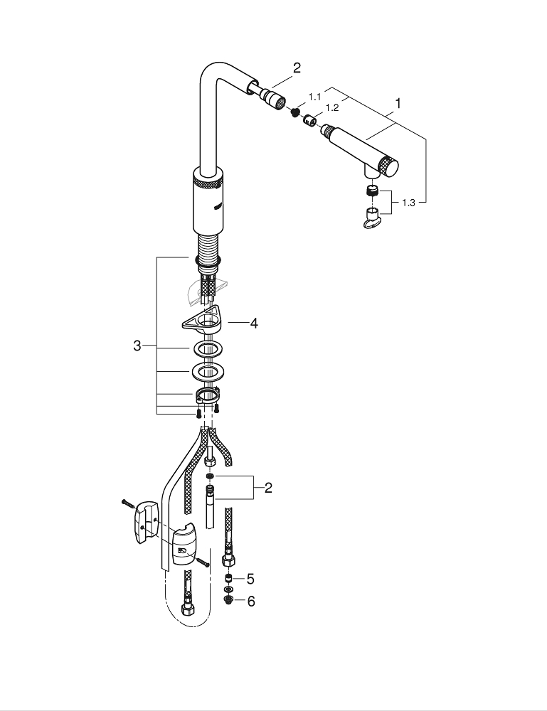 GROHE Zero interne kanalen, waardoor het water niet met de legering in contact komt