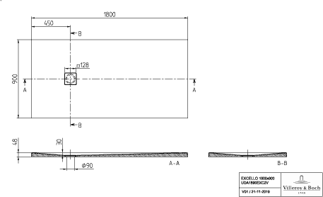 Villeroy & Boch Excello douchebak rechthoekig 180x90x4cm stone white