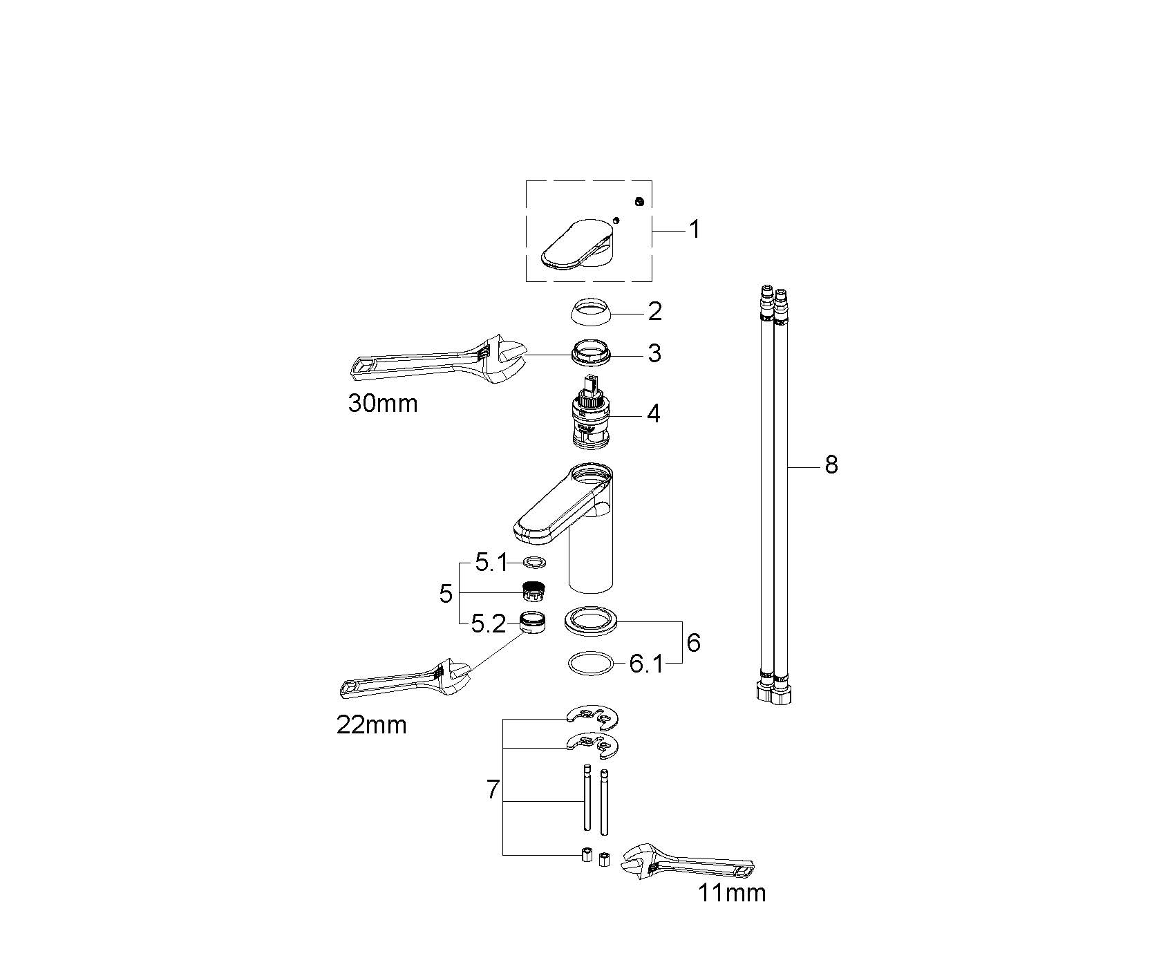 | Bediening kraan | Eengreepsbediening | |