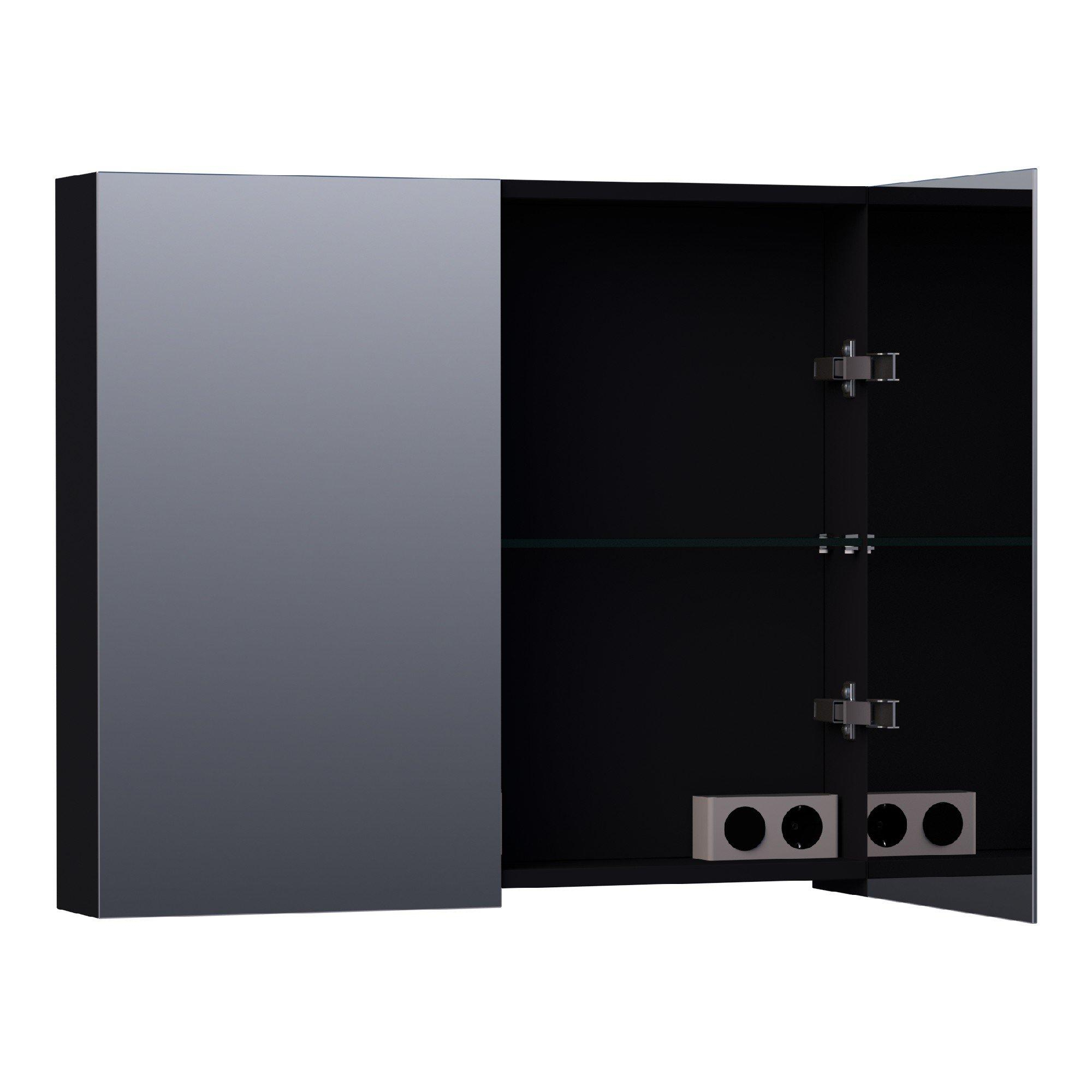 BRAUER Impress spiegelkast - 80x70x15cm - zonder verlichting - 2 dubbelzijdige spiegeldeuren - mat zwart