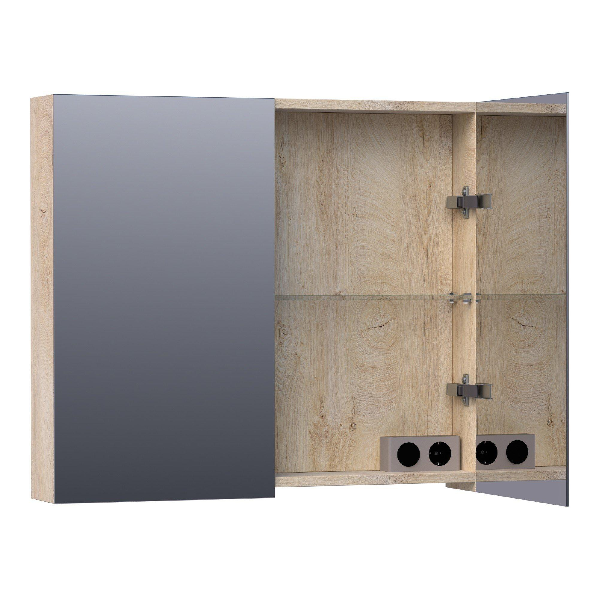 BRAUER Impress spiegelkast - 80x70x15cm - zonder verlichting - 2 dubbelzijdige spiegeldeuren - Forest Wheat