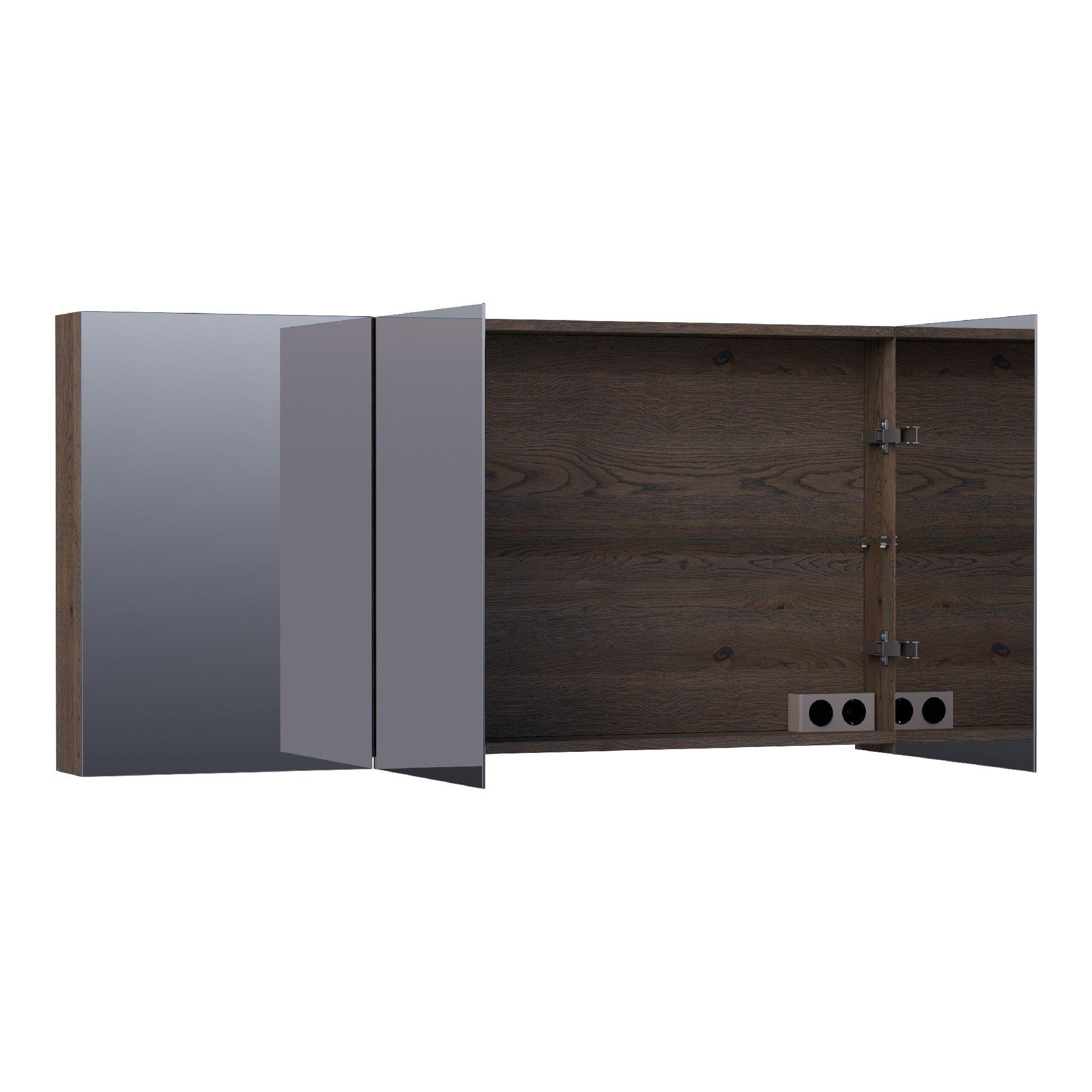 BRAUER Impress spiegelkast - 140x70x15cm - zonder verlichting - met 3 dubbelzijdige spiegeldeuren - lamellen eiken zwart