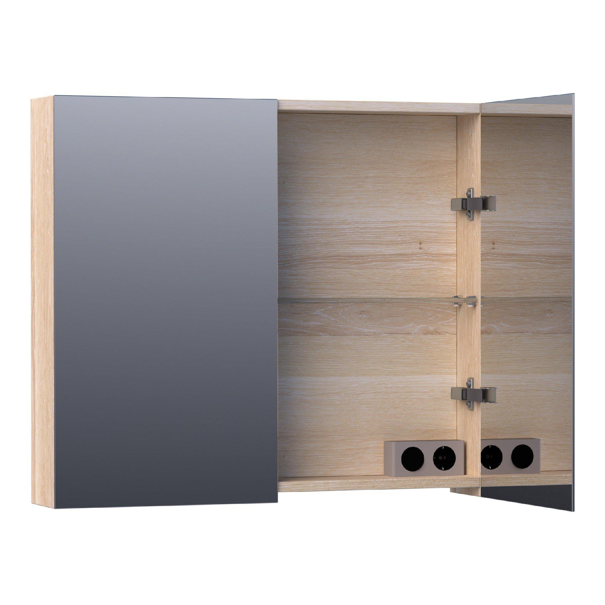 BRAUER Plain Spiegelkast - 80x70x15cm - 2 links/rechtsdraaiende spiegeldeuren - hout - white oak