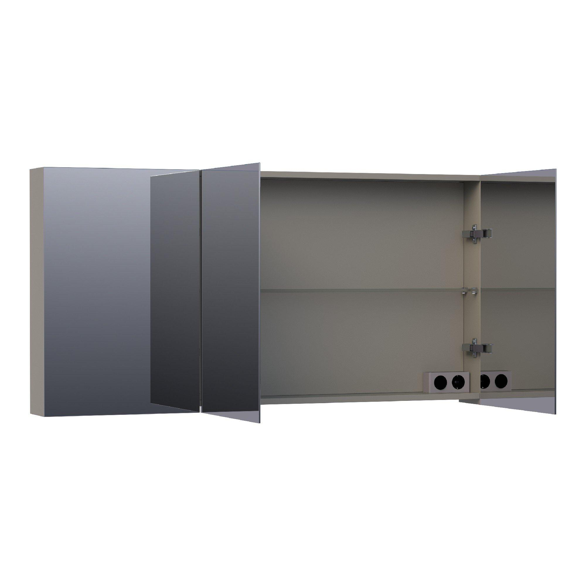 BRAUER Impress spiegelkast - 140x70x15cm - zonder verlichting - met 3 dubbelzijdige spiegeldeuren - mat taupe