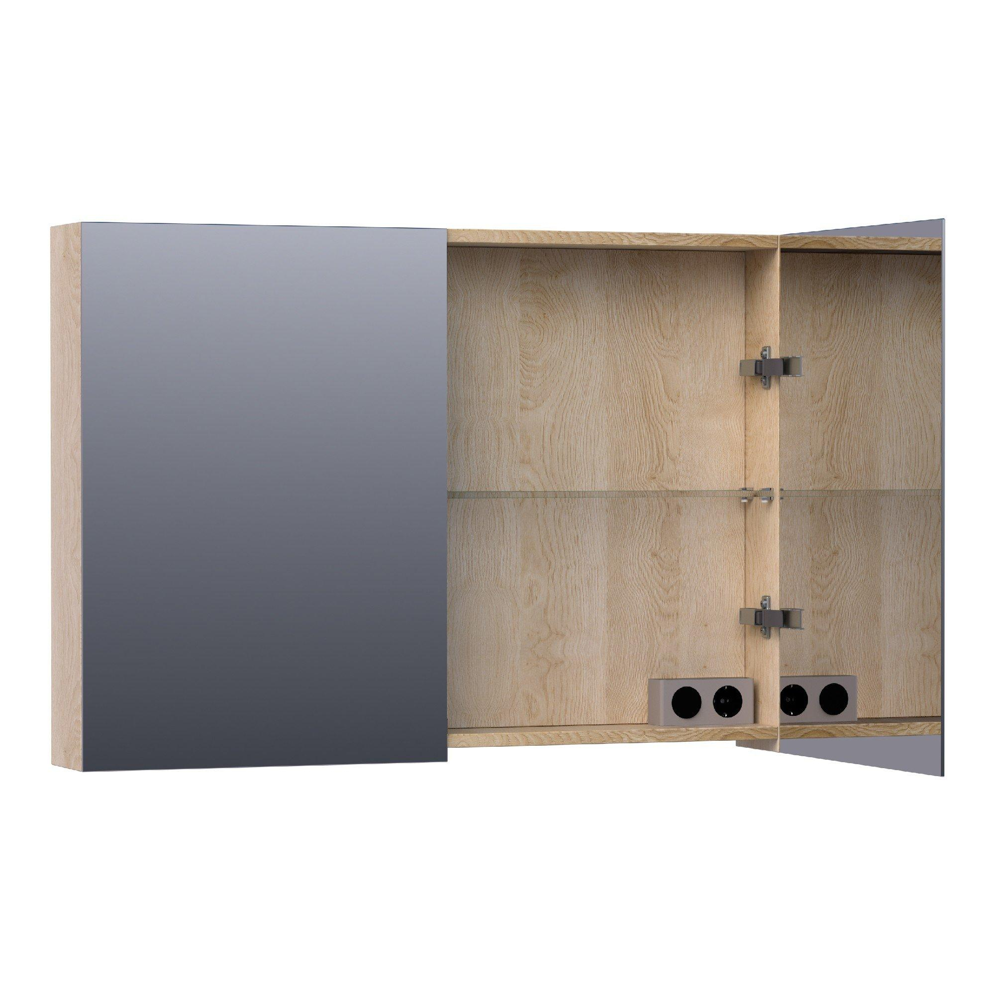 BRAUER Plain Spiegelkast - 100x70x15cm - 2 links/rechtsdraaiende spiegeldeuren - MFC - legno calore
