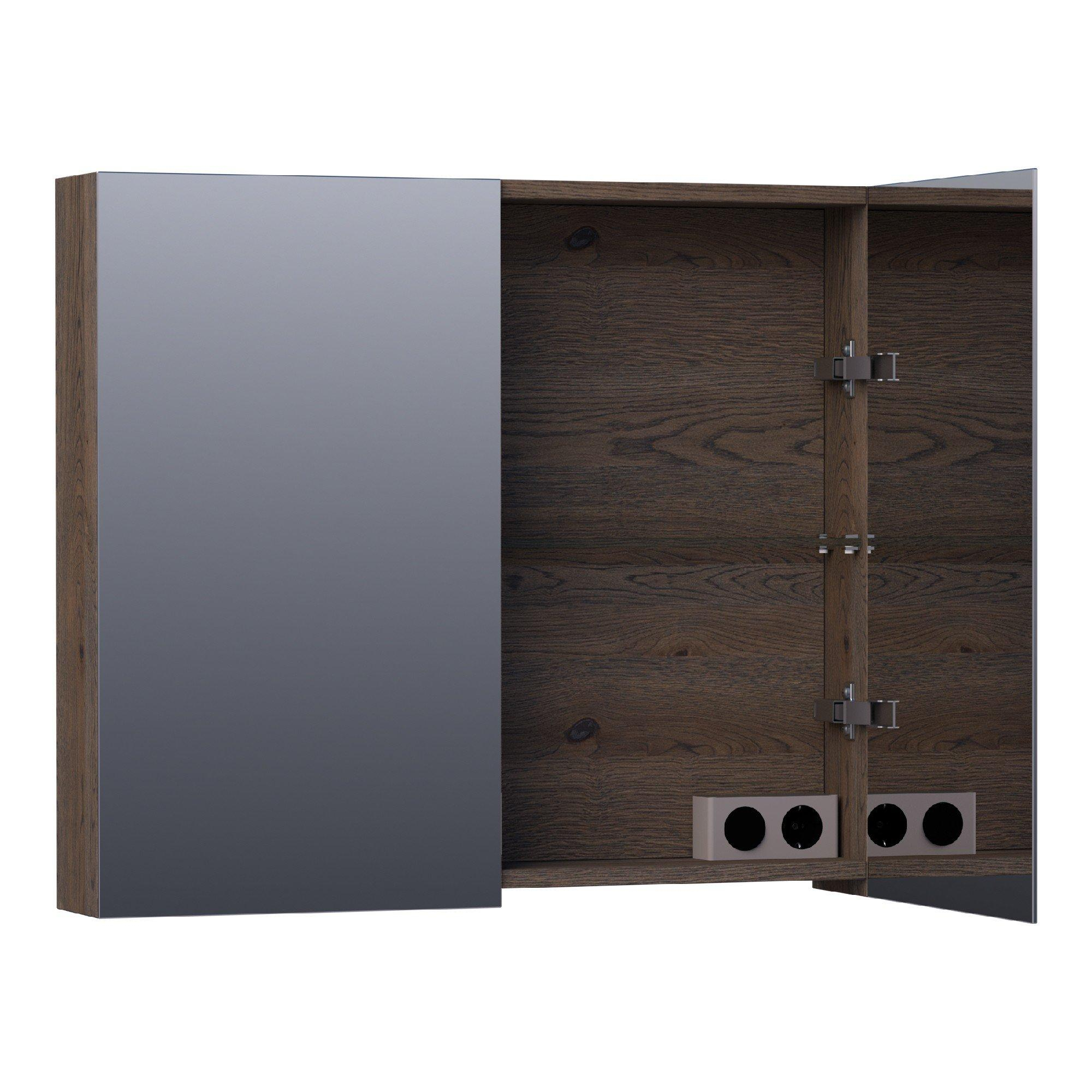 BRAUER Impress spiegelkast - 80x70x15cm - zonder verlichting - 2 dubbelzijdige spiegeldeuren - lamellen eiken zwart