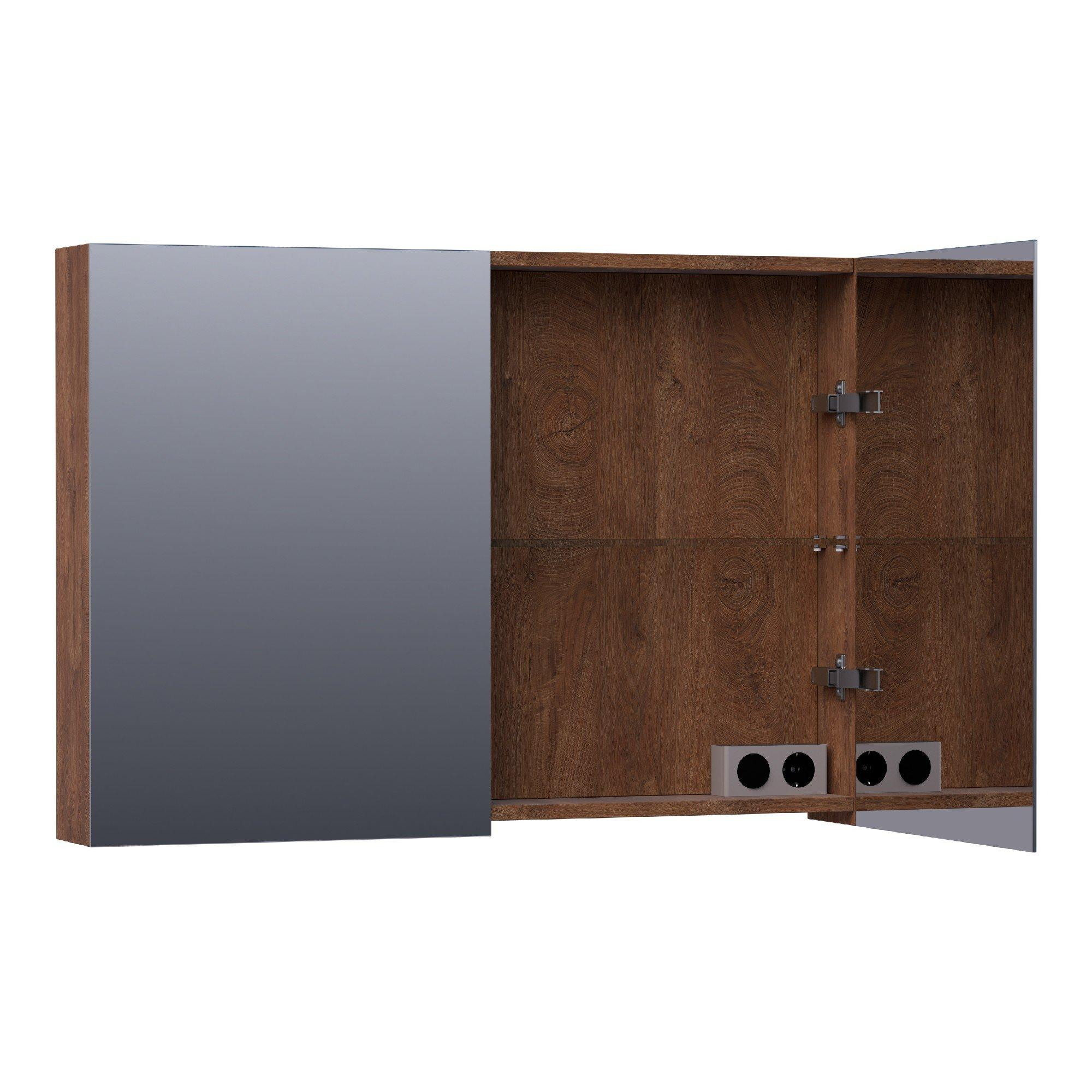 BRAUER Impress spiegelkast - 100x70x15cm - zonder verlichting - 2 dubbelzijdige spiegeldeuren - Forest Cacao