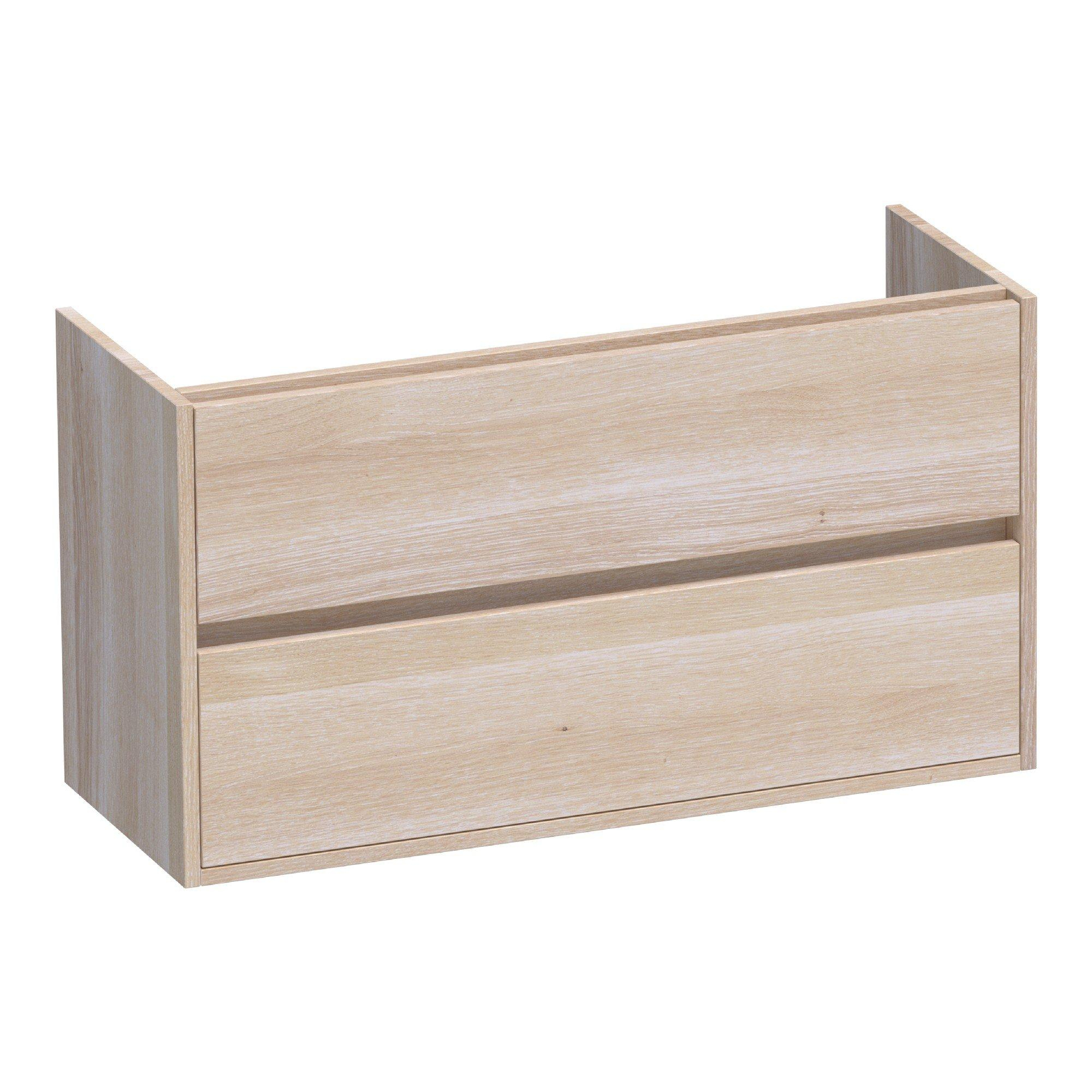 BRAUER Adore wastafelonderkast ondiep - 100x39x55cm - 2 softclose lades - greeploos - 1 sifon uitsparing - massief eiken - lamellen eiken wit