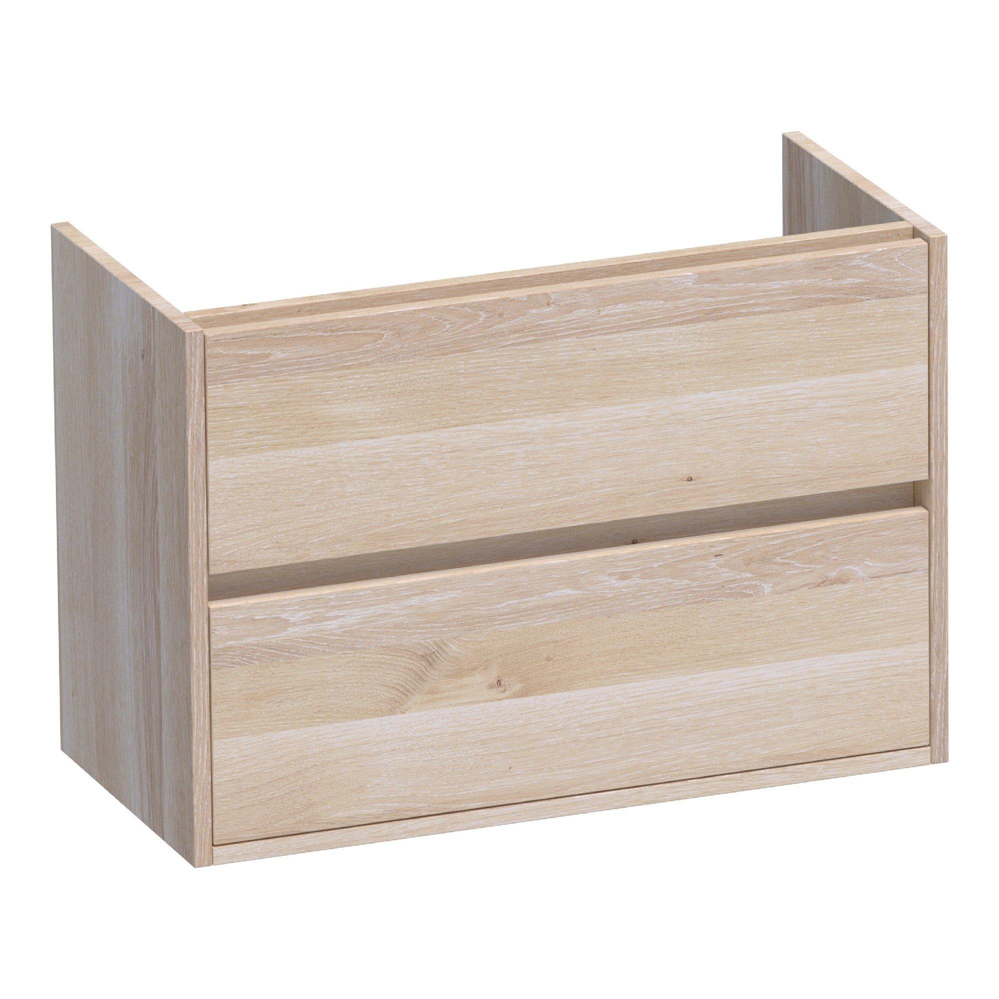 BRAUER Adore wastafelonderkast ondiep - 80x39x55cm - 2 softclose lades - greeploos - 1 sifon uitsparing - massief eiken - lamellen eiken wit