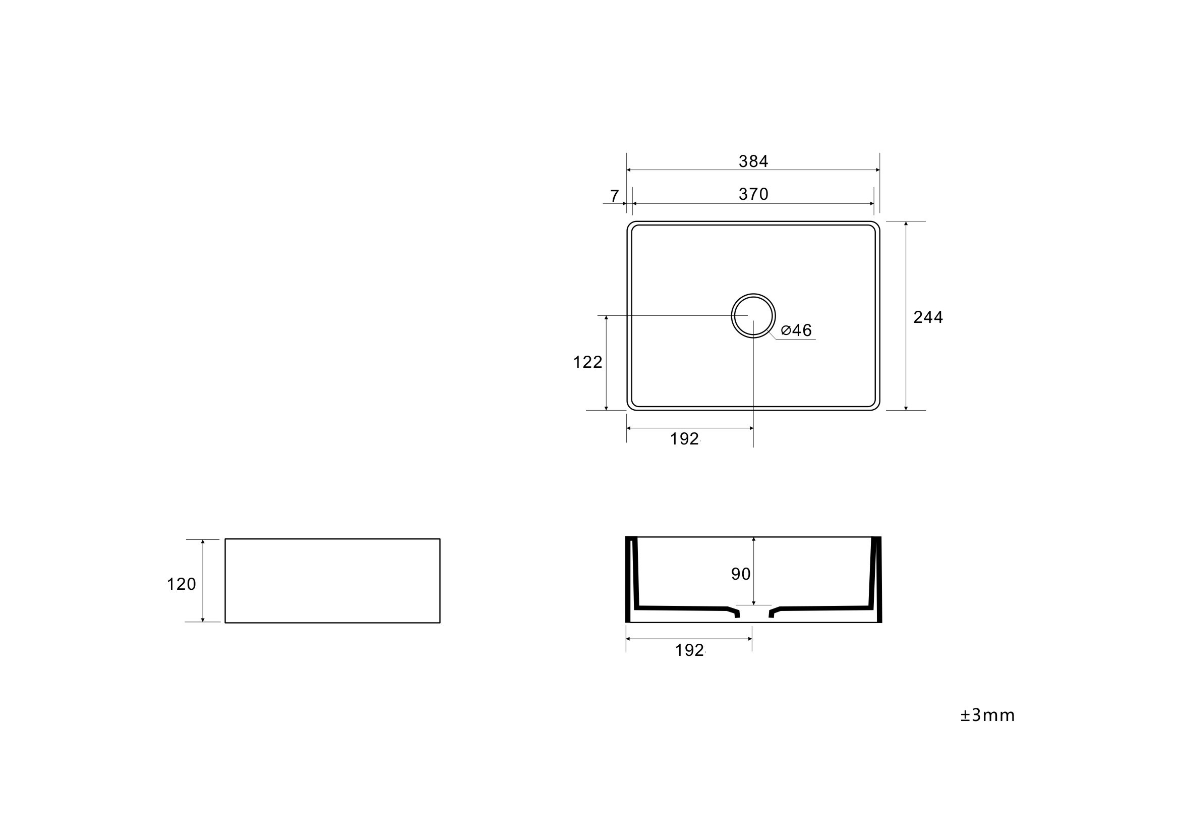 - De afmeting van de opzetwastafel is 24 x 38 x 12 centimeter
