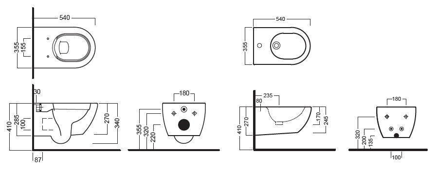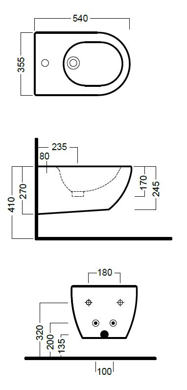 Royal plaza Novia wandbidet met overloop 1 kraangat mat zwart