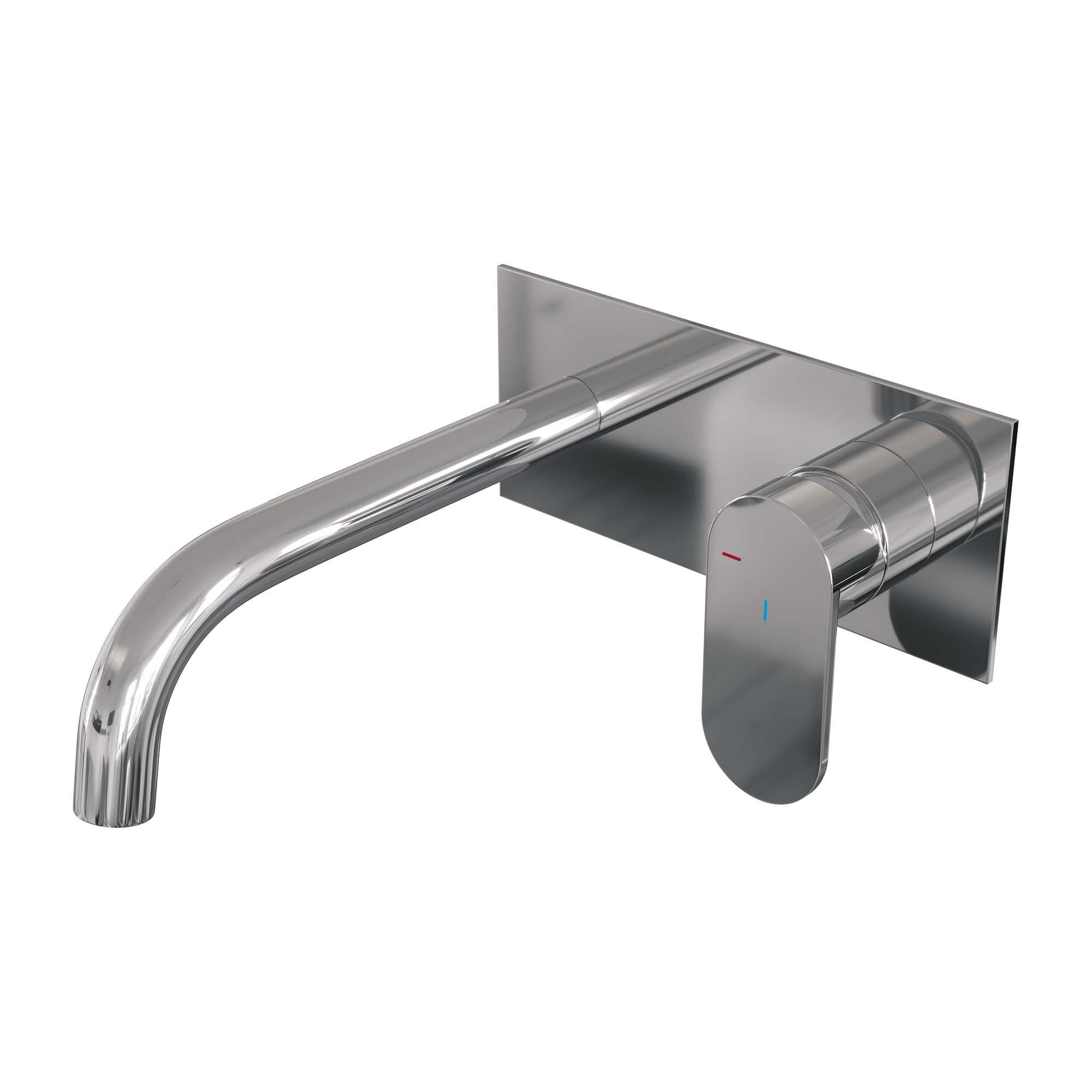 Brauer Chrome Edition Wastafelmengkraan inbouw - gebogen uitloop links - hendel breed plat - afdekplaat - model C 1 - chroom