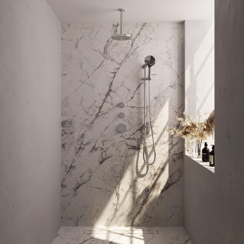 De Brauer Chrome Edition Regendoucheset straalt stijl en elegantie uit dankzij de chroomafwerking en het eigentijdse ontwerp. Het minimalistische design past perfect in moderne badkamers en geeft een luxe uitstraling aan de ruimte. De combinatie van de hoofddouche, plafondarm en handdouche zorgt voor een harmonieus geheel dat jouw douche-ervaring naar een hoger niveau tilt.