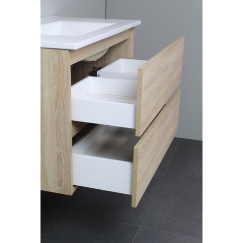 Basic Line Bella Badkamermeubelset - 80x55x46cm - 1 wasbak - Keramiek - Wit - 1 kraangat - Zonder spiegel - MDF Eiken