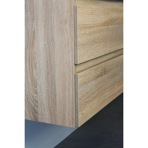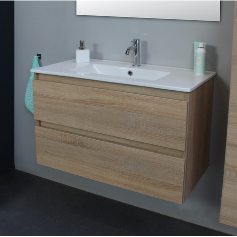 Basic Bella Badkamermeubelset - 80x55x46cm - 1 wasbak - Keramiek - Wit - 1 kraangat - Zonder spiegel - MDF Eiken