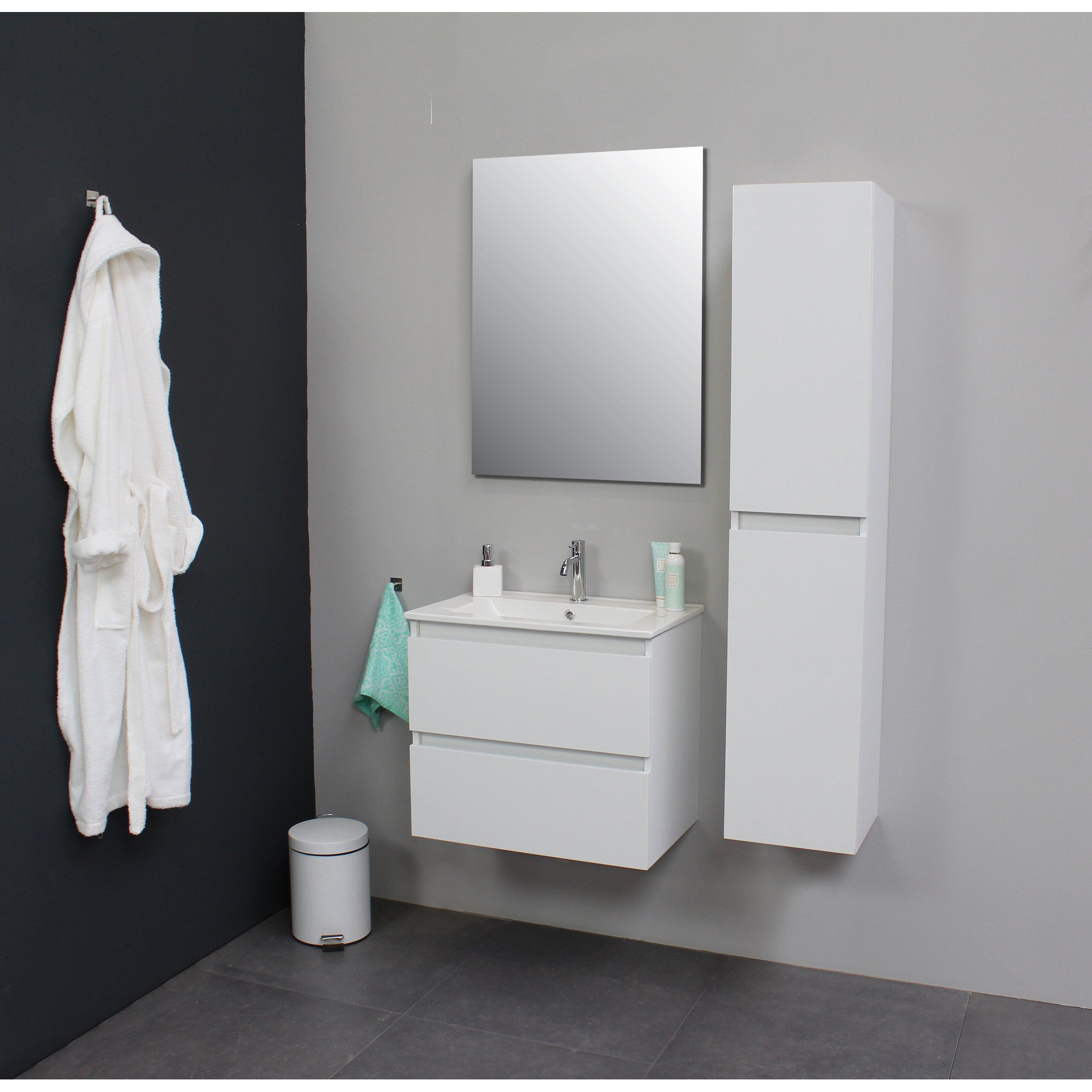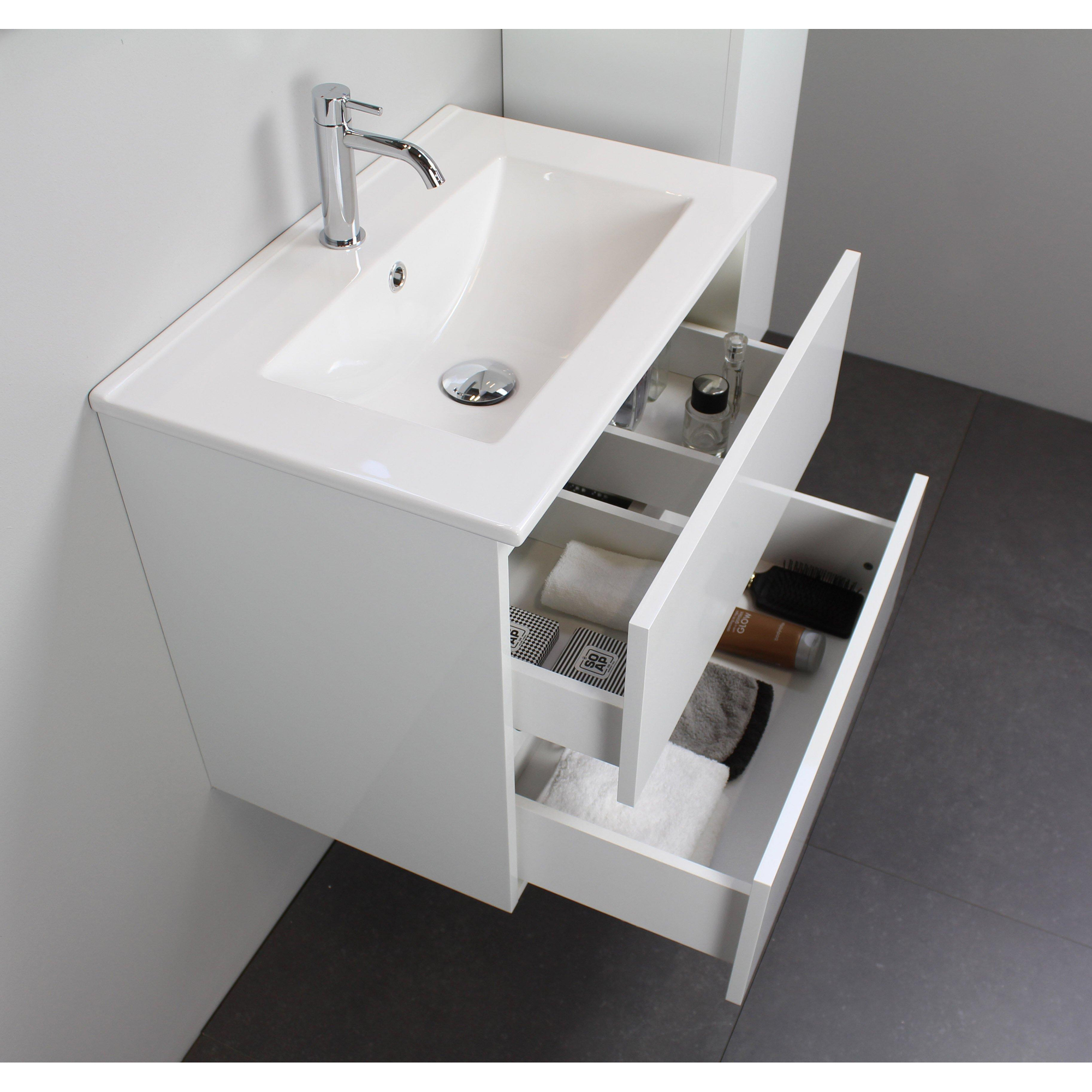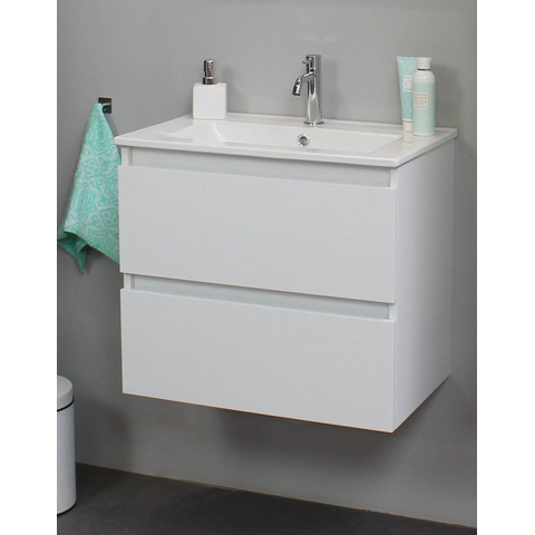 Basic Line Bella Badkamermeubelset - 60x55x46cm - 1 wasbak - Keramiek - Wit - 1 kraangat - Zonder spiegel - Melamine Wit hoogglans