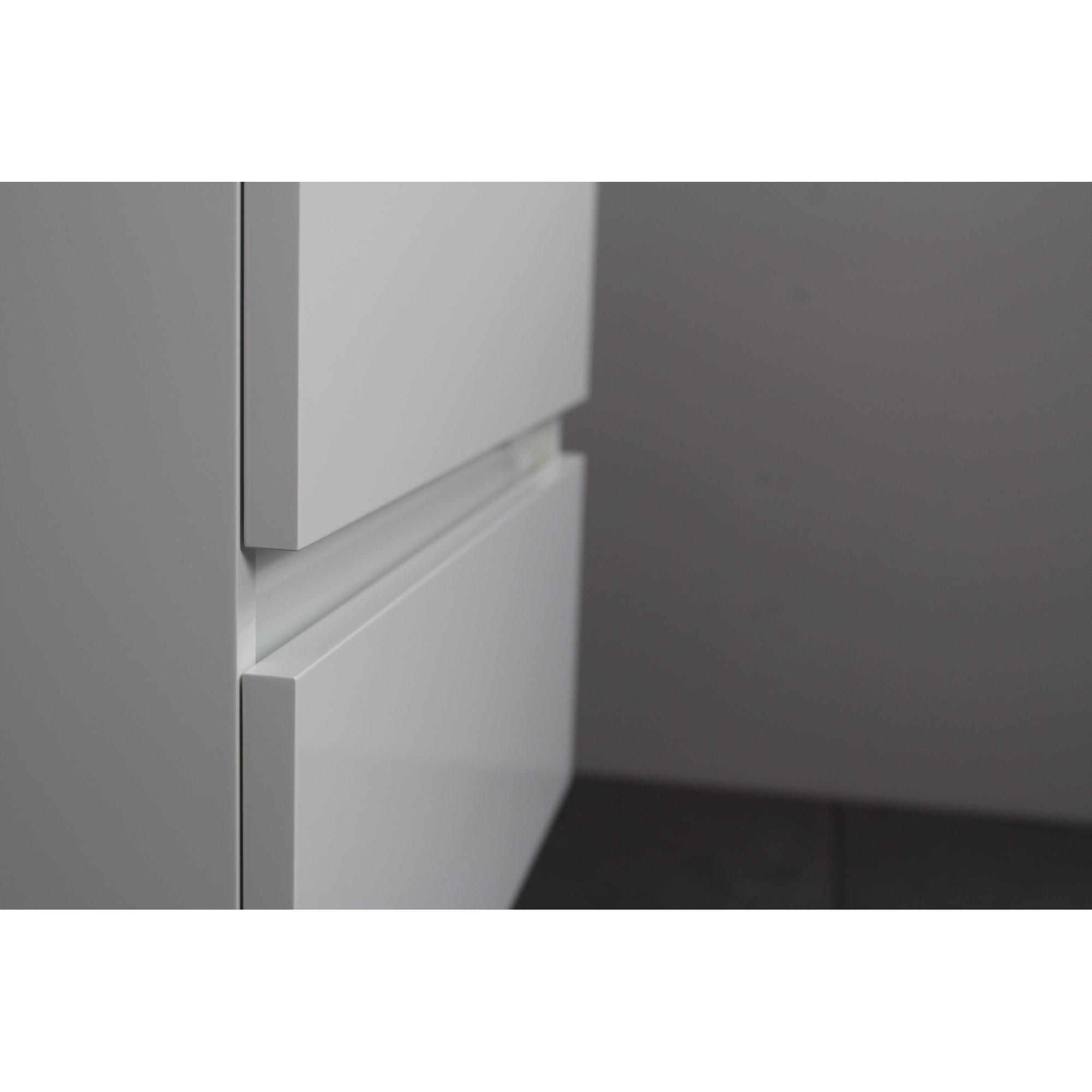 De Basic Bella badkamermeubelset is niet alleen stijlvol, maar ook uiterst functioneel. Met een wasbak van keramiek en een kraangat, biedt het gemak en comfort in het dagelijks gebruik. De afmetingen van 60x55x46cm maken het een compacte oplossing voor kleinere badkamers, zonder in te leveren op opbergruimte. De hoogglans afwerking voegt een vleugje luxe toe aan de ruimte, terwijl het ontbreken van een spiegel ruimte biedt voor persoonlijke decoratie.