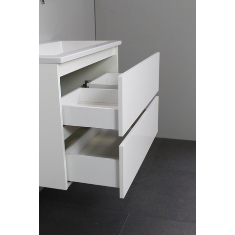 De Basic Bella badkamermeubelset straalt stijl en klasse uit. Het heldere witte design zorgt voor een frisse en schone uitstraling, waardoor je badkamer direct opfleurt. De combinatie van materialen zorgt voor duurzaamheid en eenvoudig onderhoud, waardoor je lang van dit meubelstuk kunt genieten. Het minimalistische ontwerp past perfect bij zowel moderne als klassieke badkamerinrichtingen.
