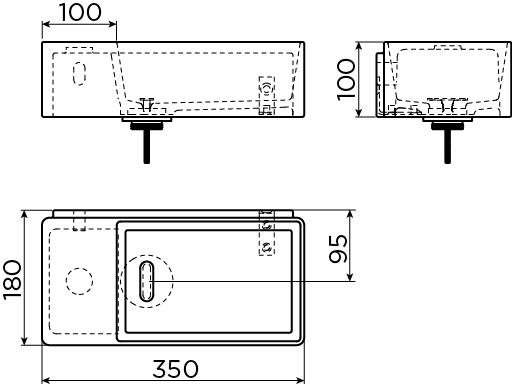 Clou New Flush 3 fontein 35x18cm inclusief afvoerset zonder kraangat links keramiek wit