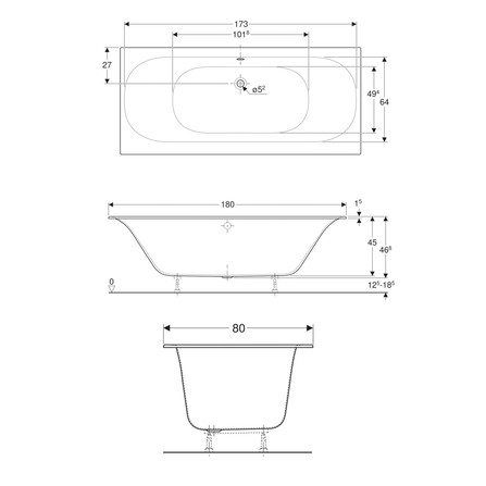 Met de optionele Geberit badpoten kan het bad stevig en op de juiste hoogte worden geplaatst.