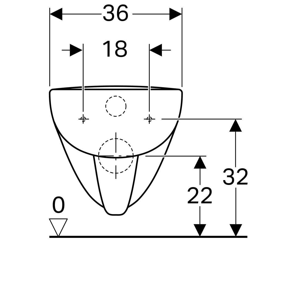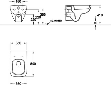• Hartmaat bevestiging closet: 180 mm
