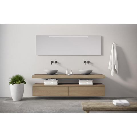 De LoooX Wooden Base Block is leverbaar in een lengtemaat van 100 en 200 cm. De Wooden Base Shelf is verkrijgbaar in de lengtematen 100, 120, 140, 160 en 200 cm. De Wooden Base Shelf en Wooden Block zijn naadloos te combineren met de overige producten uit de LoooX Wood & Light Collection. Deze worden geleverd zonder opbouwwastafel(s).