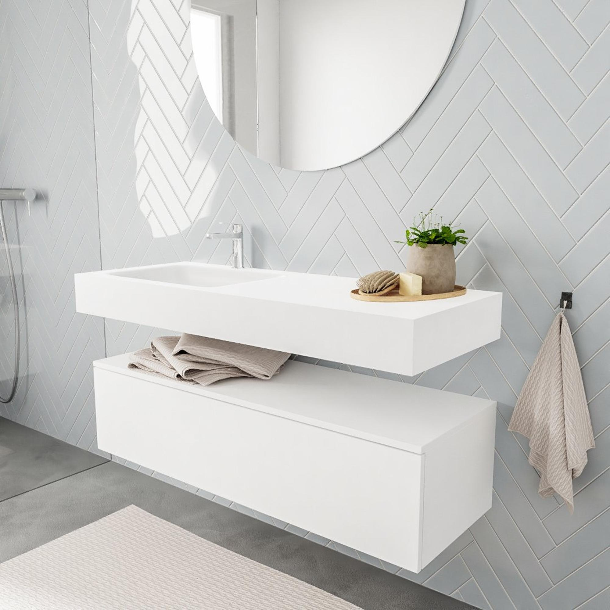 MONDIAZ ALAN 120cm - onderkast - 1 lade - vrijhangende wastafel - wasbak links - 1 kraangat - talc