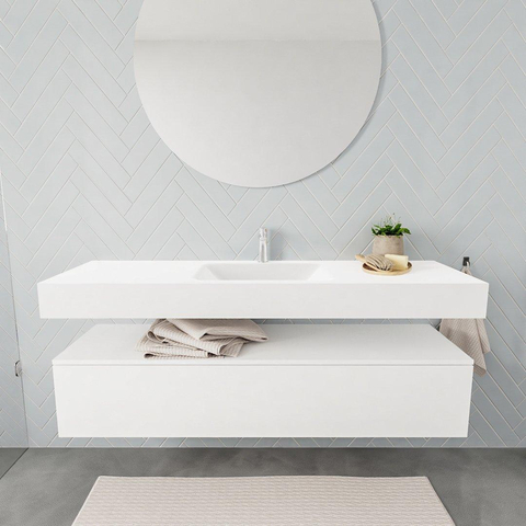 MONDIAZ ALAN 150cm - onderkast - 1 lade - vrijhangende wastafel - wasbak midden - 1 kraangat - talc